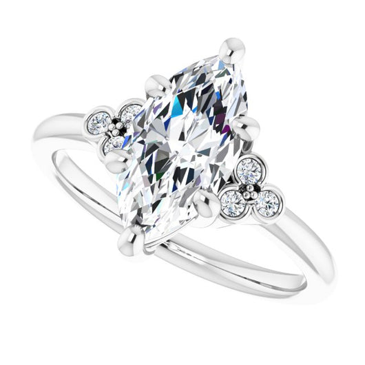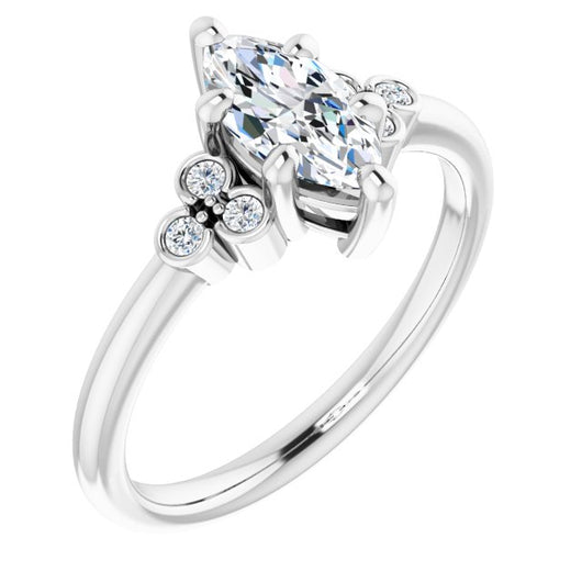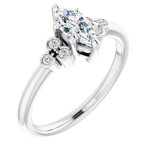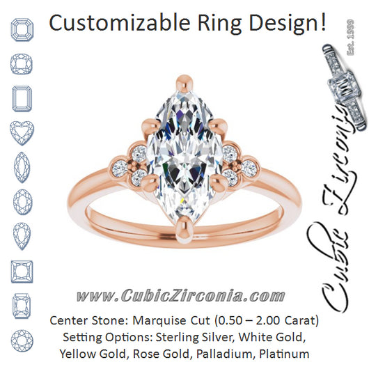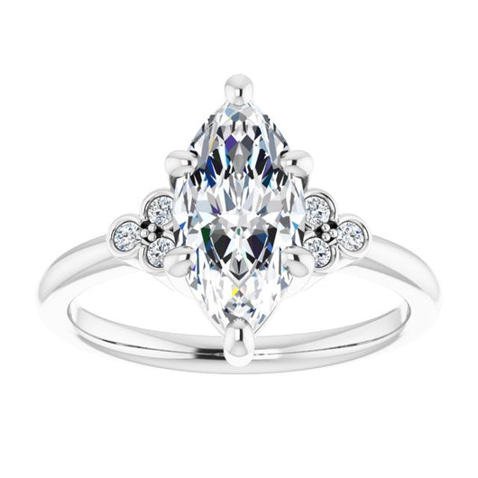 Cubic Zirconia Engagement Ring- The Irene (Customizable 7-stone Marquise Cut Center with Round-Bezel Side Stones)