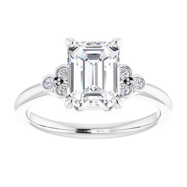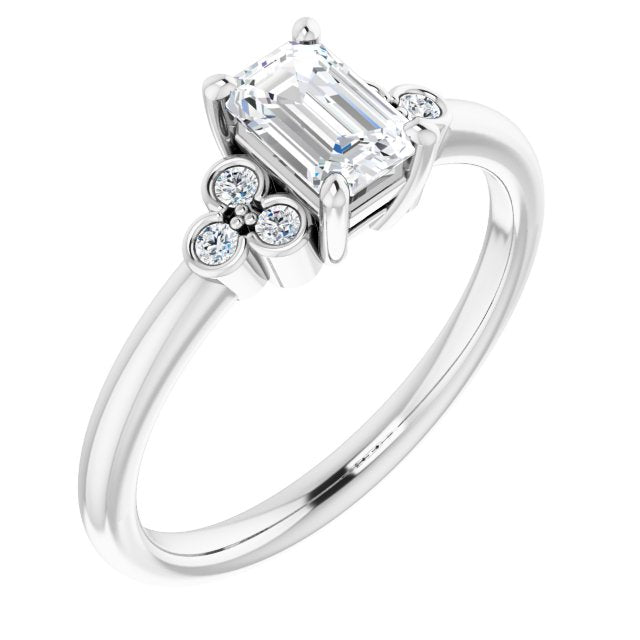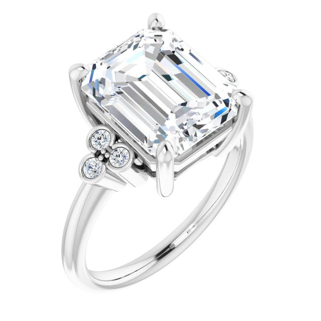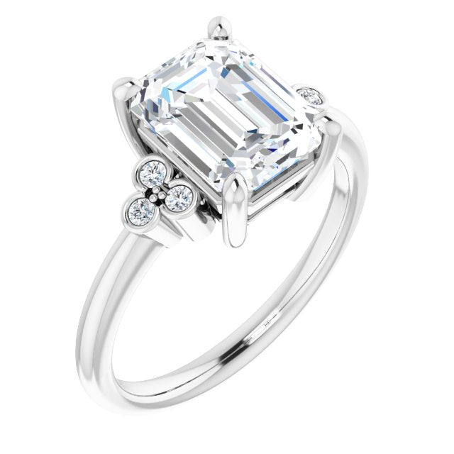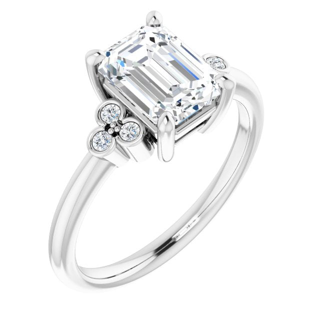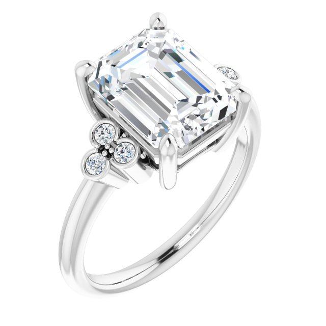 10K White Gold Customizable 7-stone Emerald/Radiant Cut Center with Round-Bezel Side Stones