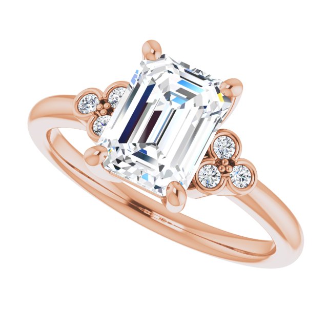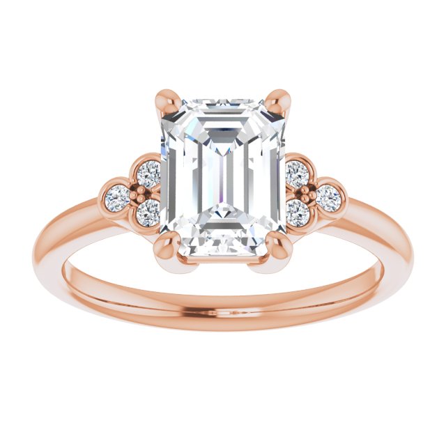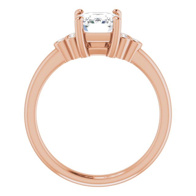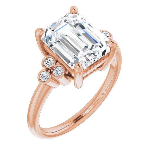 10K Rose Gold Customizable 7-stone Emerald/Radiant Cut Center with Round-Bezel Side Stones