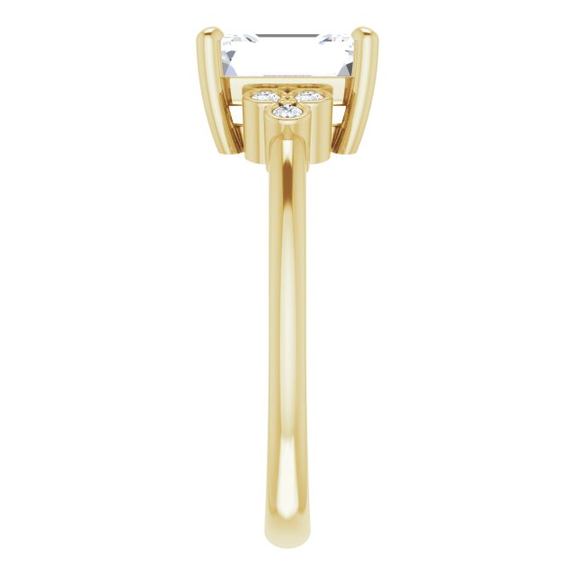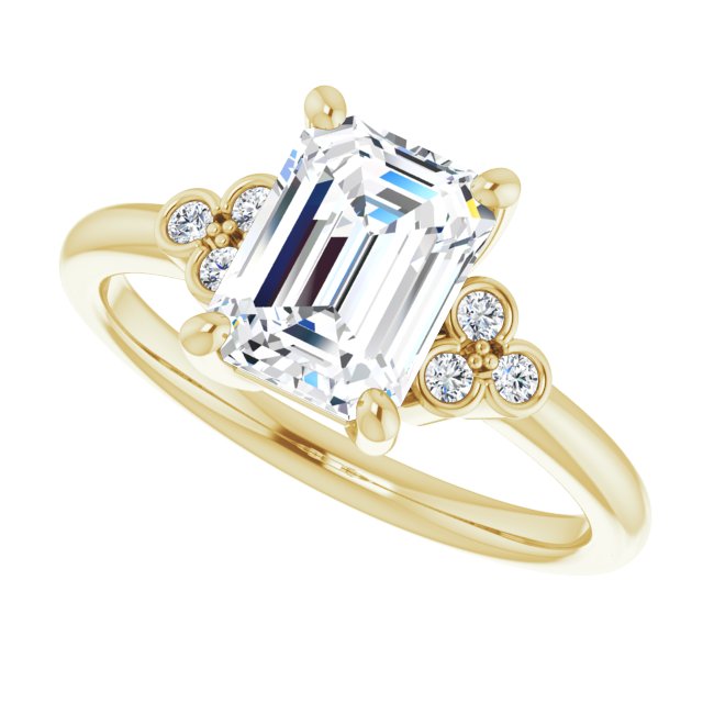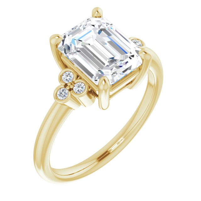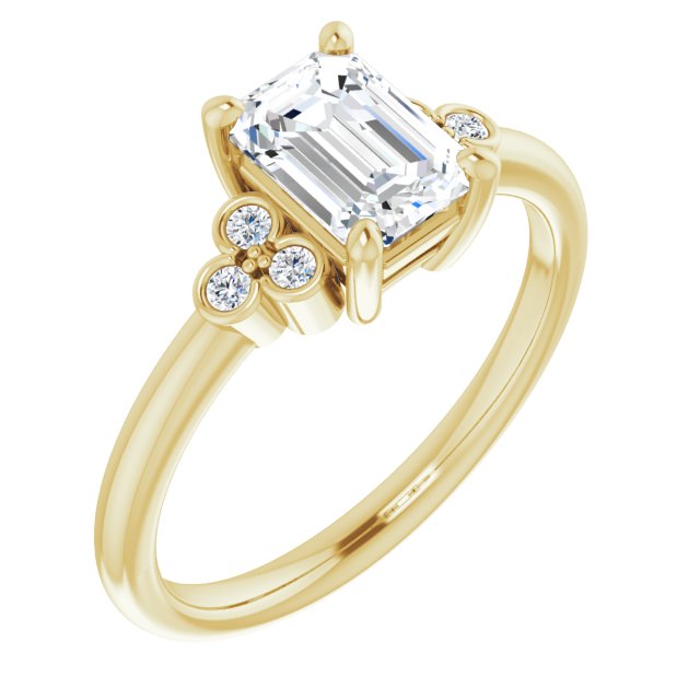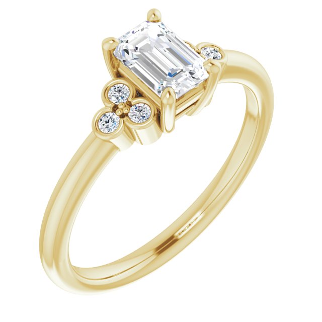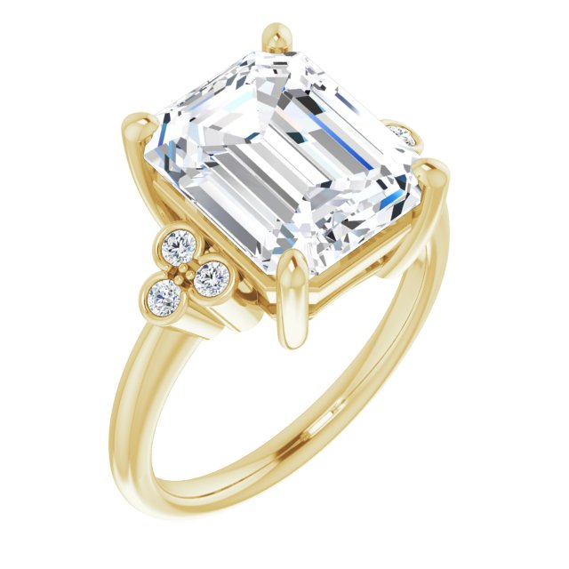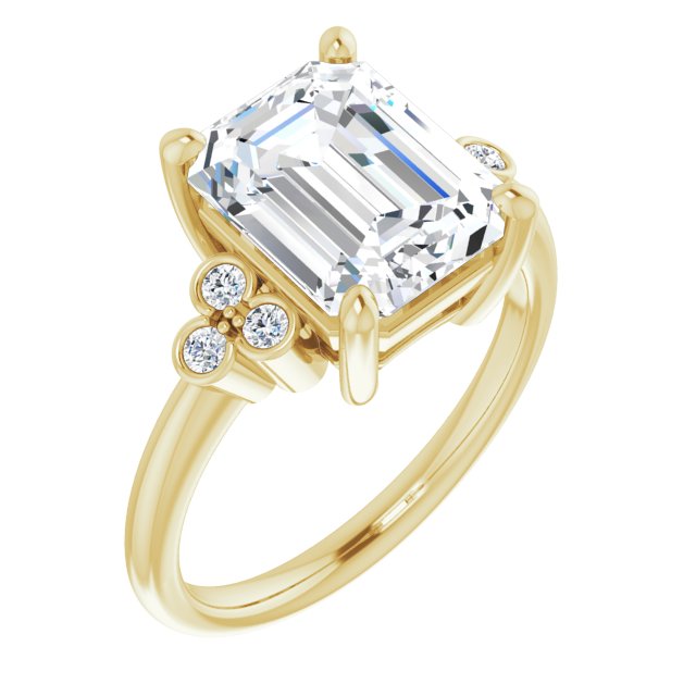 10K Yellow Gold Customizable 7-stone Emerald/Radiant Cut Center with Round-Bezel Side Stones