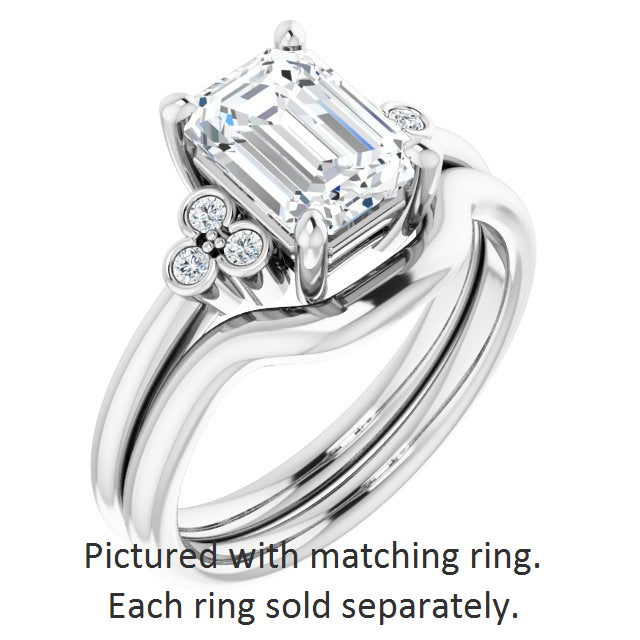 Center Stone Shape: Radiant Cut (as pictured with Emerald Cut). See this customizable ring set with other available center stone shapes here: customize setting.