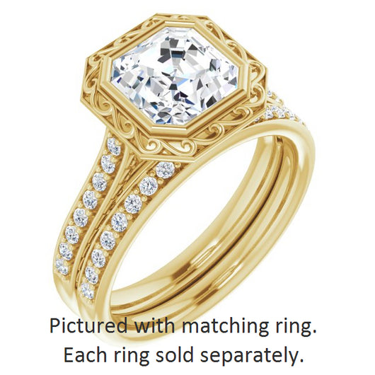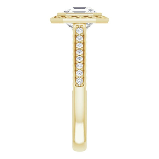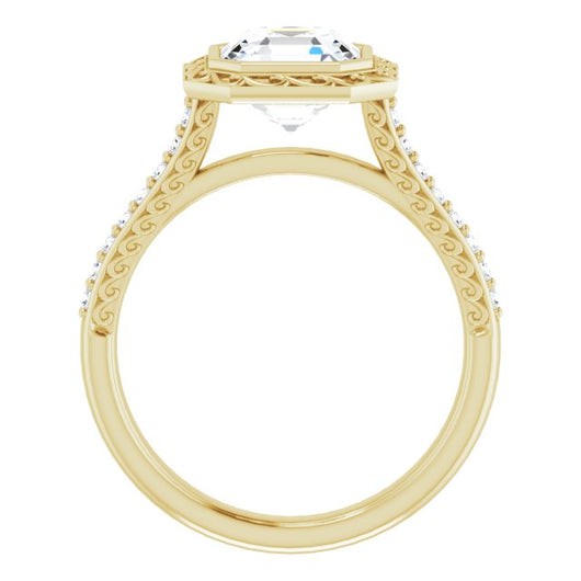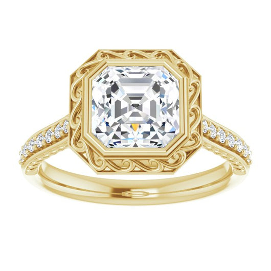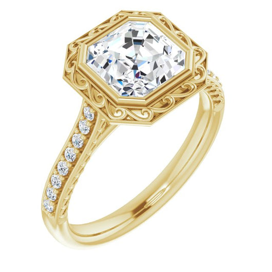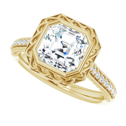 10K Yellow Gold Customizable Cathedral-Bezel Asscher Cut Design featuring Accented Band with Filigree Inlay