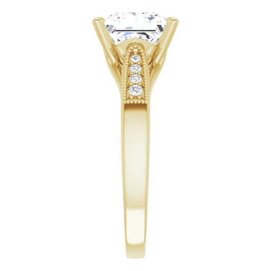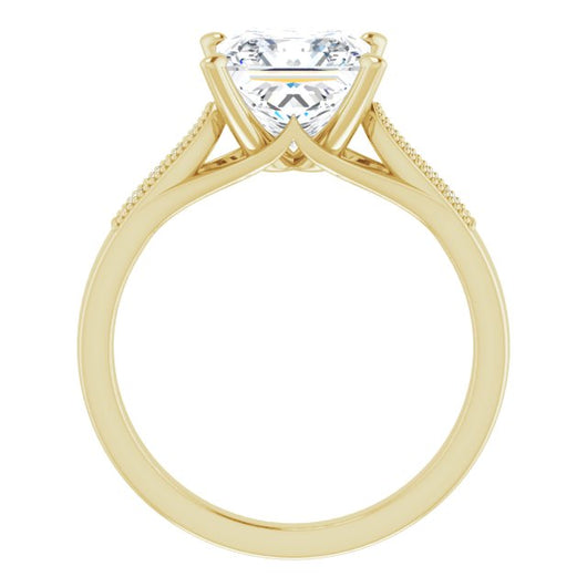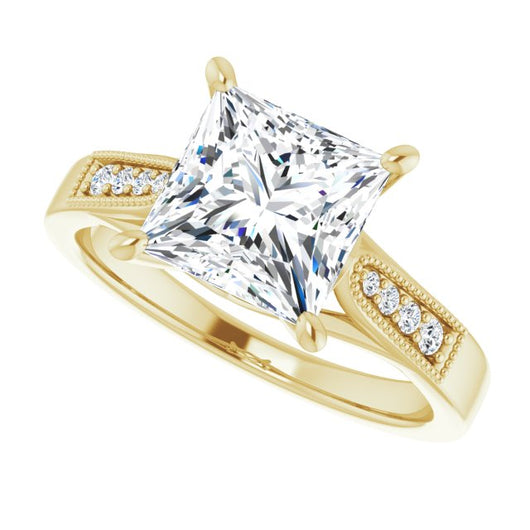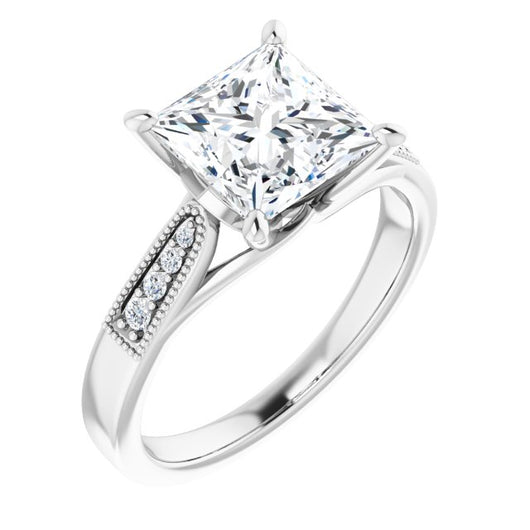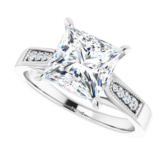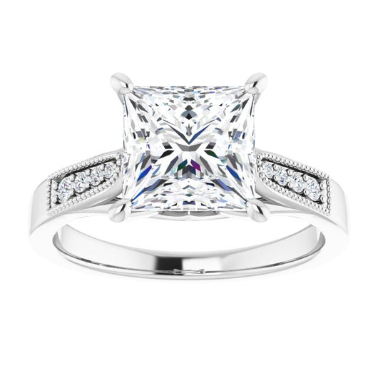 Center Stone Shape: Princess/Square Cut (as pictured). See this customizable ring set with other available center stone shapes here: customize setting.