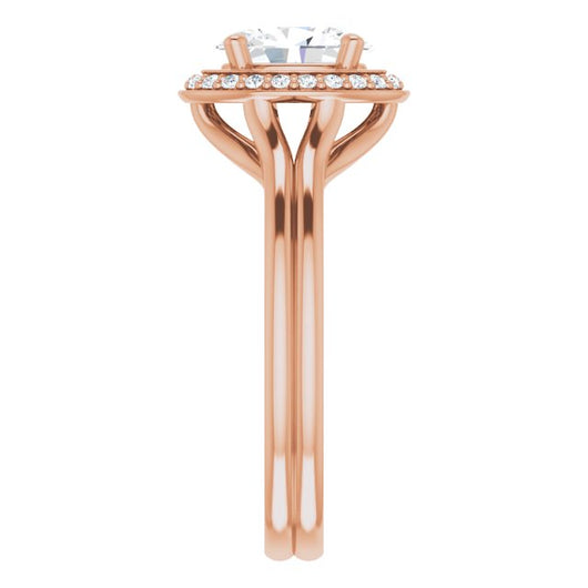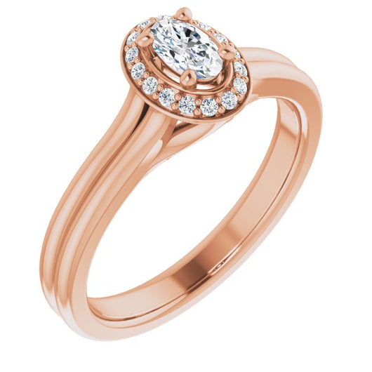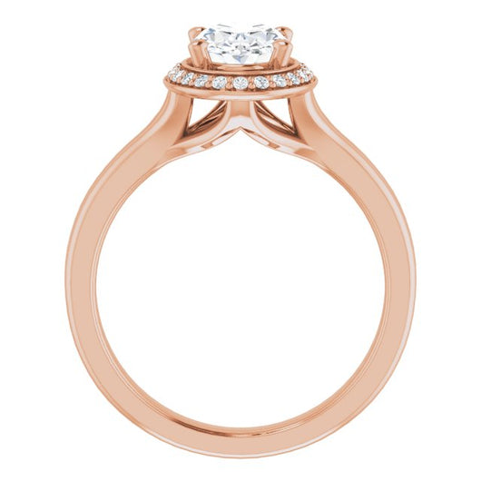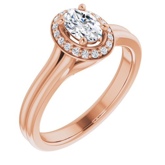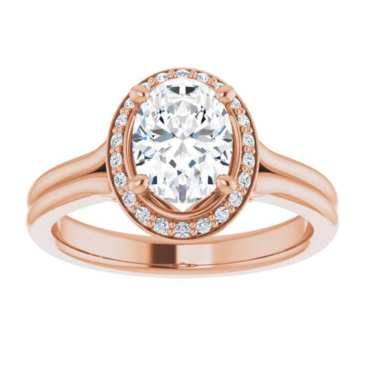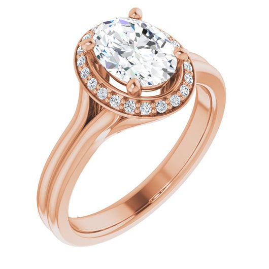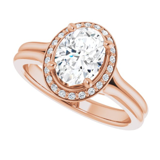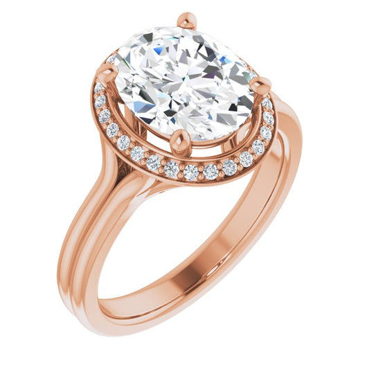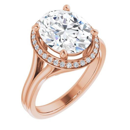 10K Rose Gold Customizable Cathedral-set Oval Cut Design with Split-band & Halo Accents