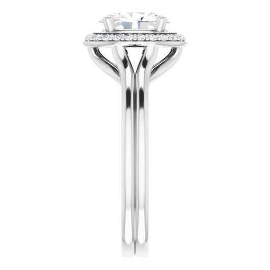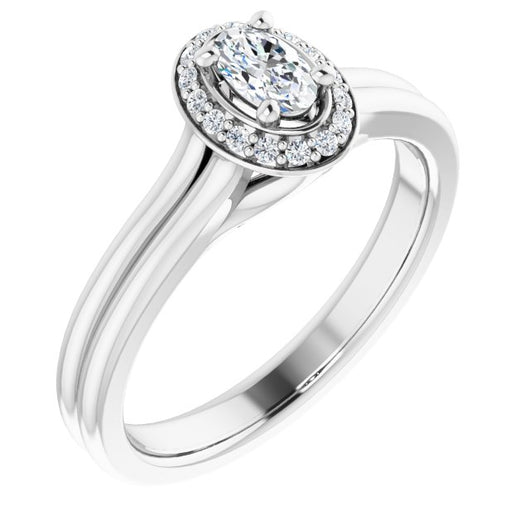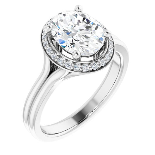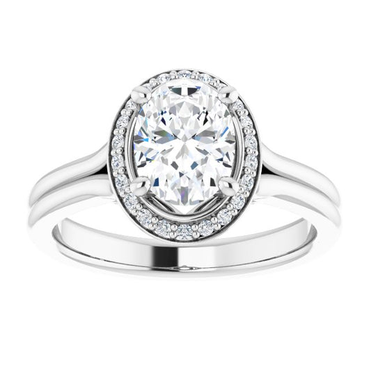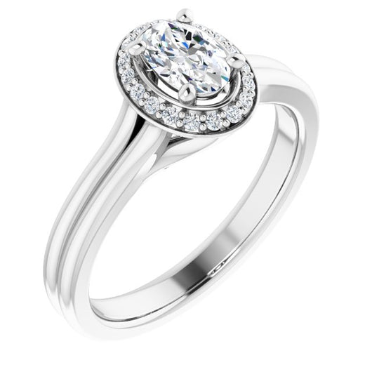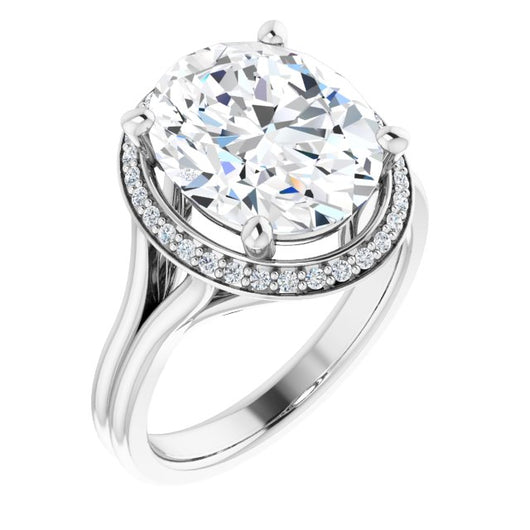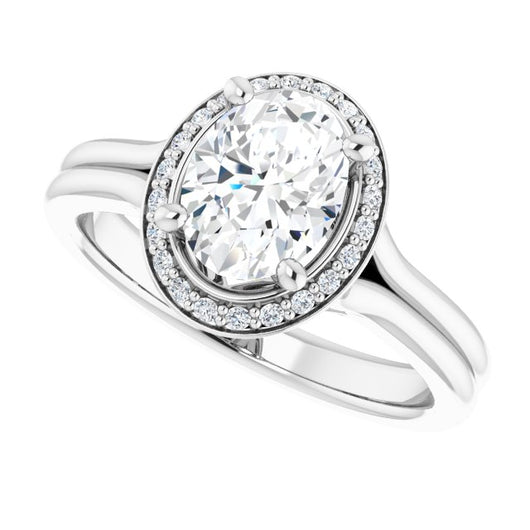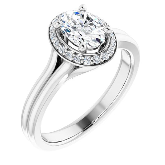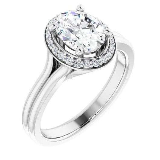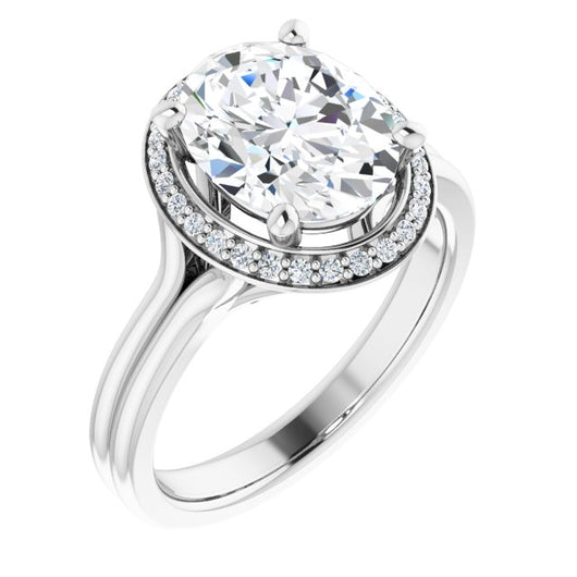 10K White Gold Customizable Cathedral-set Oval Cut Design with Split-band & Halo Accents