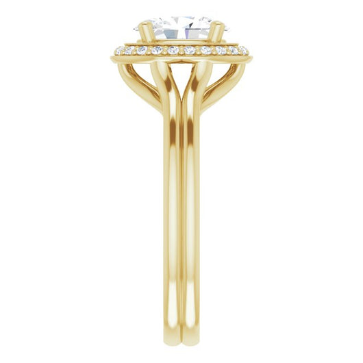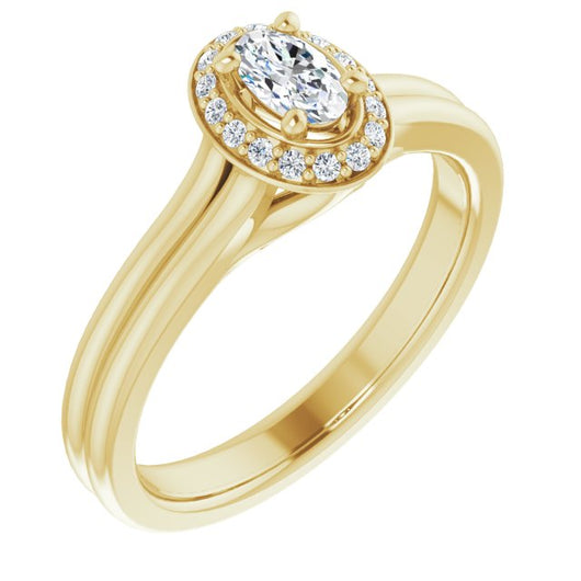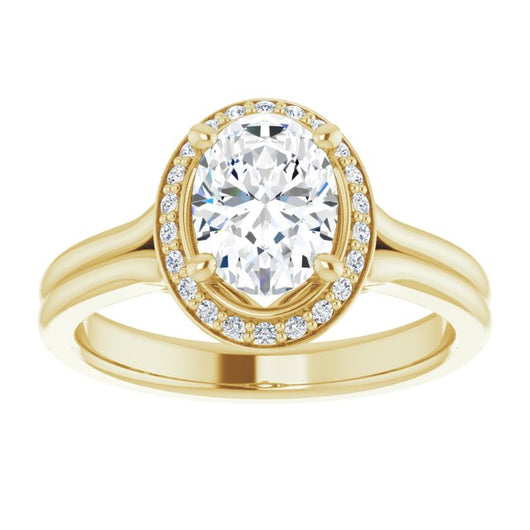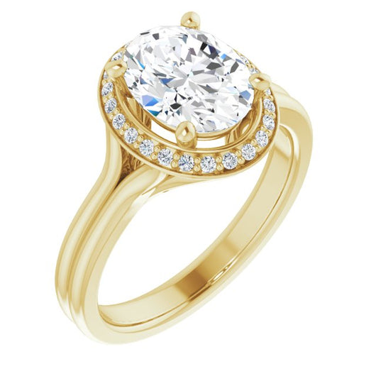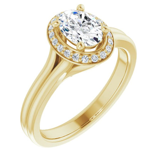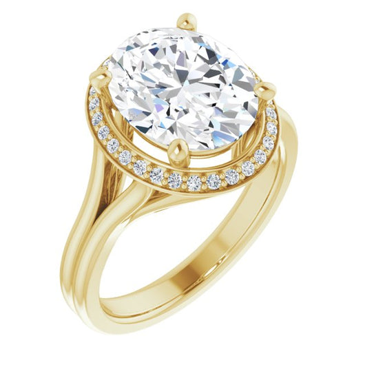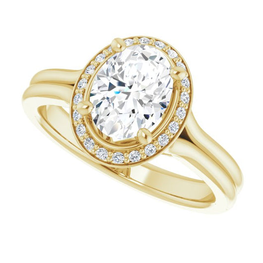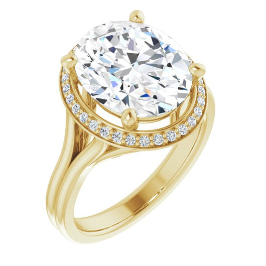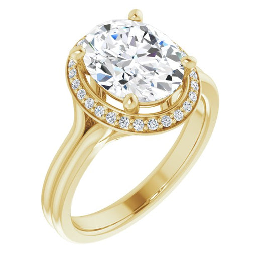10K Yellow Gold Customizable Cathedral-set Oval Cut Design with Split-band & Halo Accents