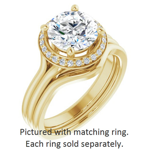 Center Stone Shape: Round Cut (as pictured). See this customizable ring set with other available center stone shapes here: customize setting.