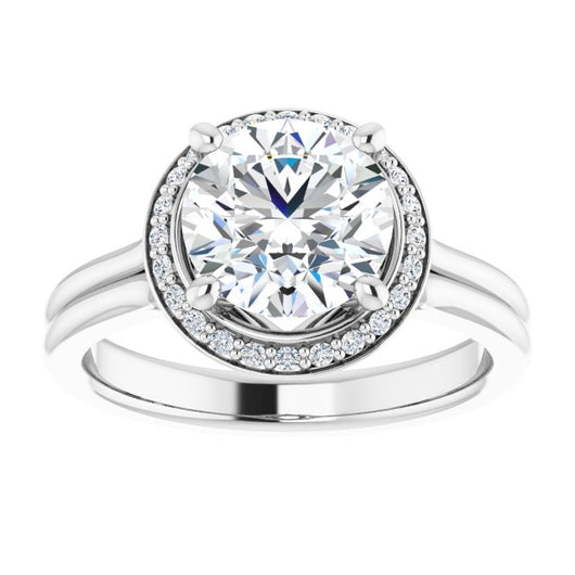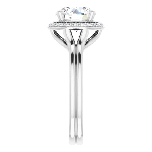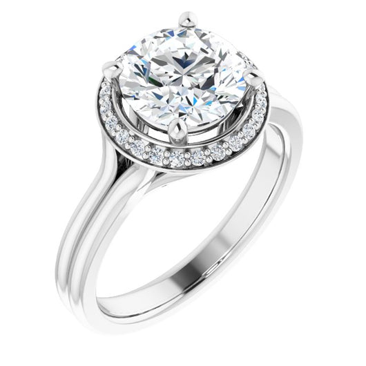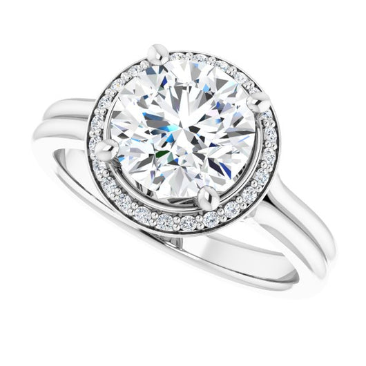 10K White Gold Customizable Cathedral-set Round Cut Design with Split-band & Halo Accents