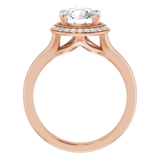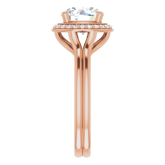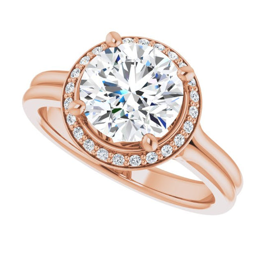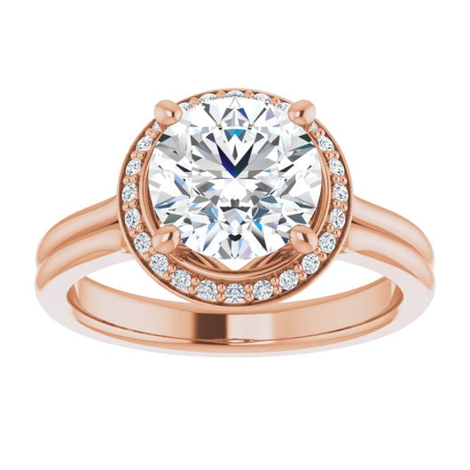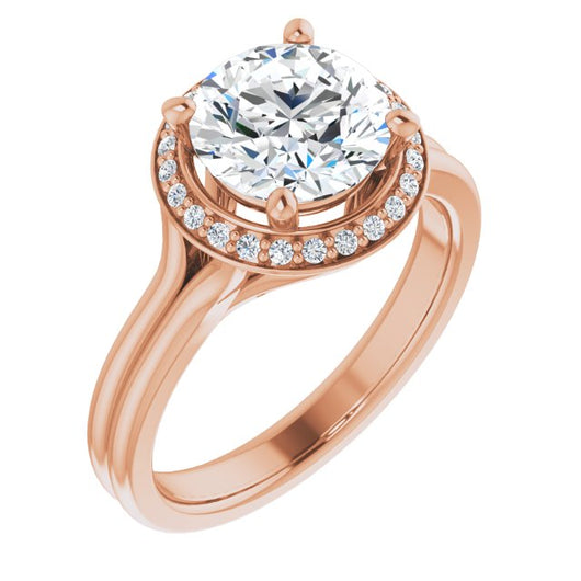 10K Rose Gold Customizable Cathedral-set Round Cut Design with Split-band & Halo Accents