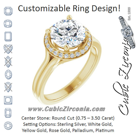 Cubic Zirconia Engagement Ring- The Ivory (Customizable Cathedral-set Round Cut Design with Split-band & Halo Accents)