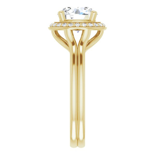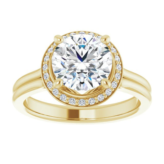 10K Yellow Gold Customizable Cathedral-set Round Cut Design with Split-band & Halo Accents