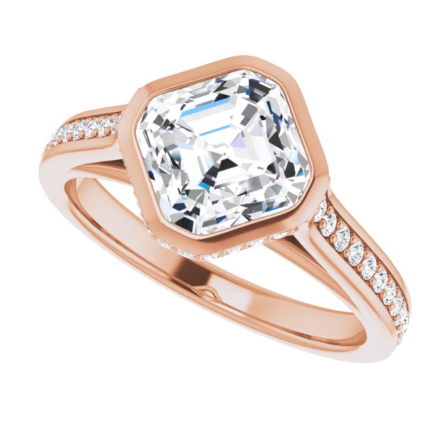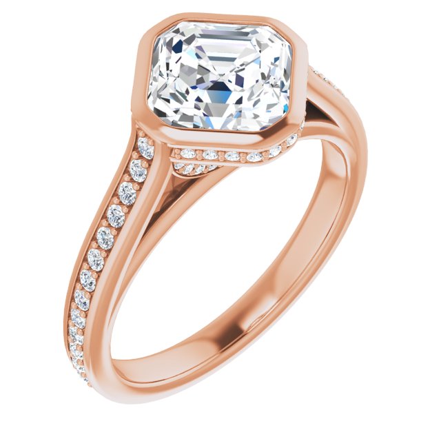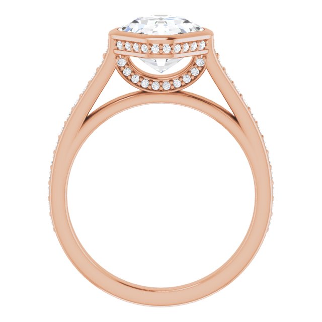 10K Rose Gold Customizable Cathedral-Bezel Asscher Cut Design with Under Halo and Shared Prong Band
