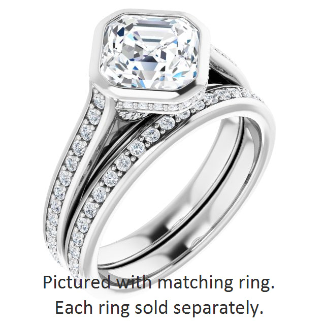 Center Stone Shape: Asscher Cut (as pictured). See this customizable ring set with other available center stone shapes here: customize setting.