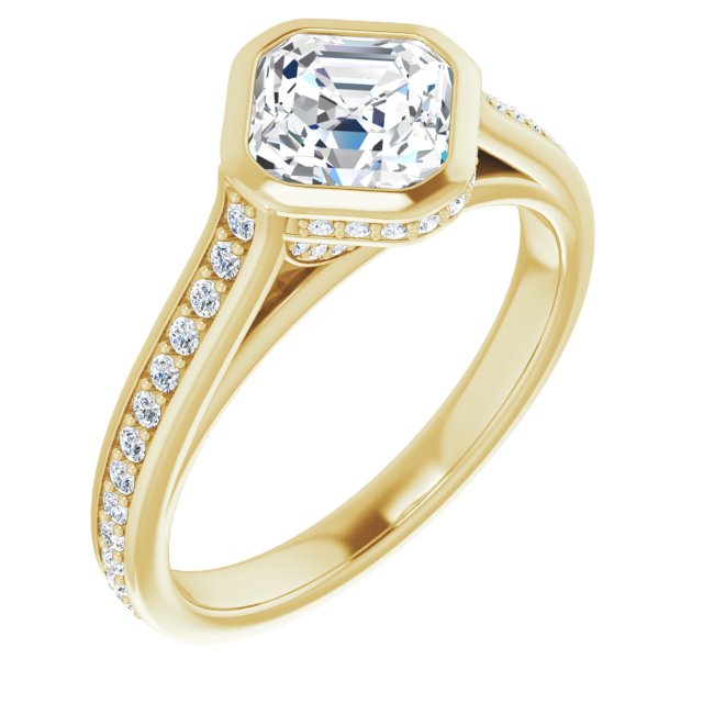 10K Yellow Gold Customizable Cathedral-Bezel Asscher Cut Design with Under Halo and Shared Prong Band