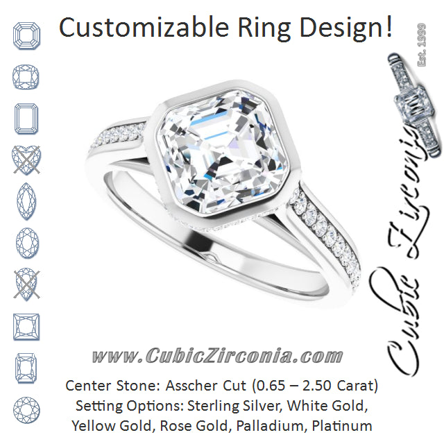 Cubic Zirconia Engagement Ring- The Jada (Customizable Cathedral-Bezel Asscher Cut Design with Under Halo and Shared Prong Band)