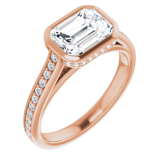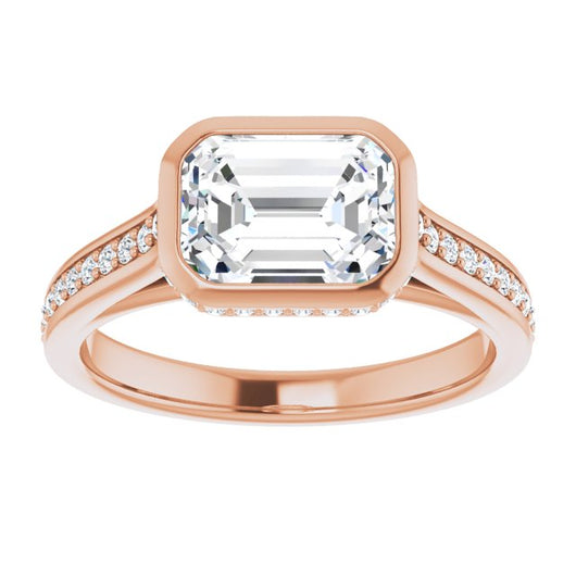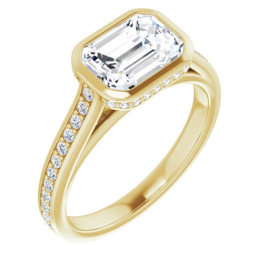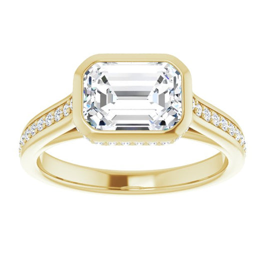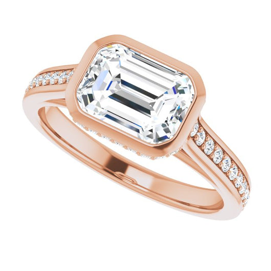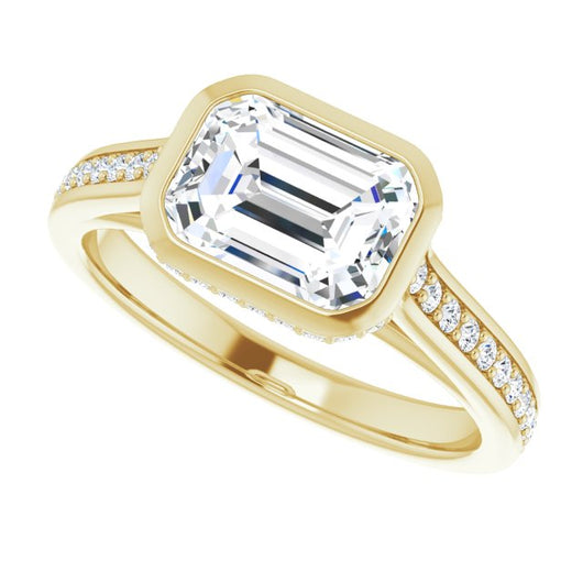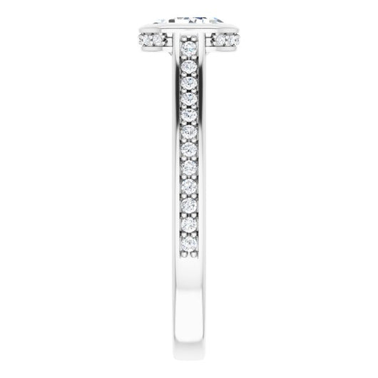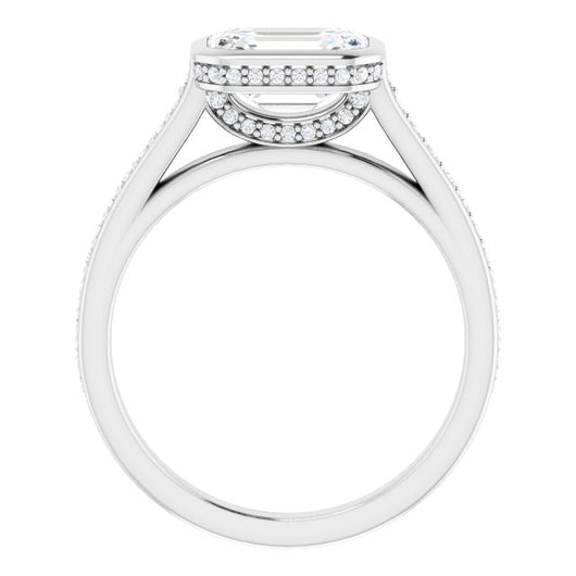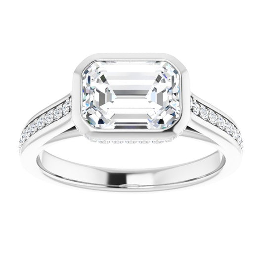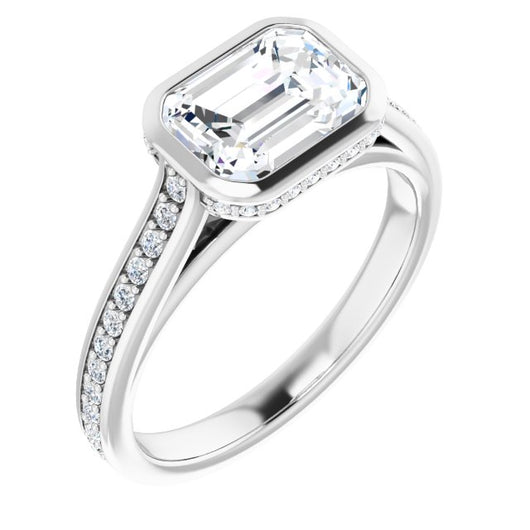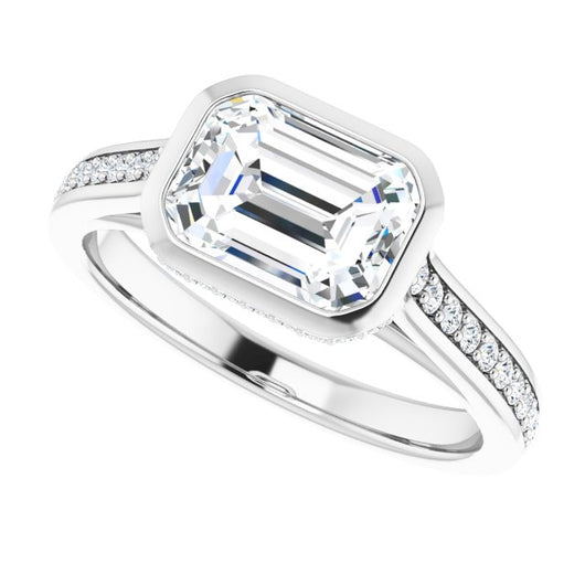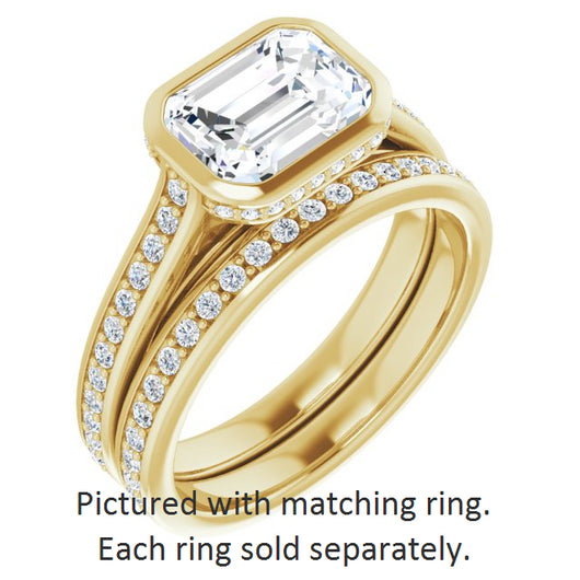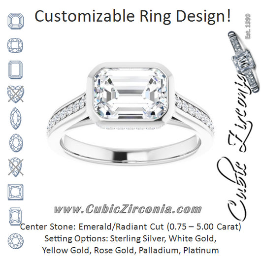 Center Stone Shape: Radiant Cut (as pictured with Emerald Cut). See this customizable ring set with other available center stone shapes here: customize setting.