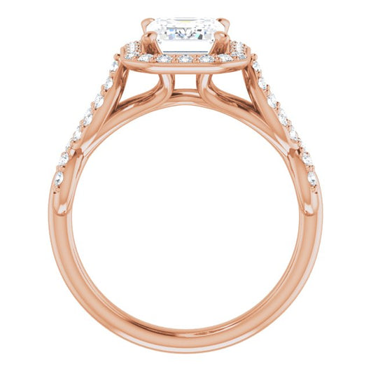 10K Rose Gold Customizable Cathedral-Halo Emerald/Radiant Cut Design with Artisan Infinity-inspired Twisting Pavé Band