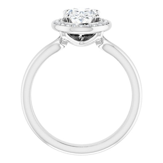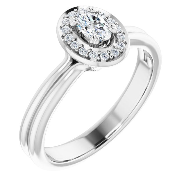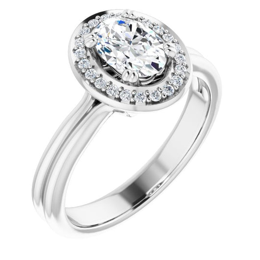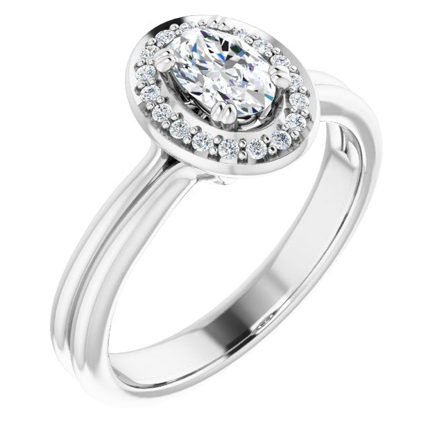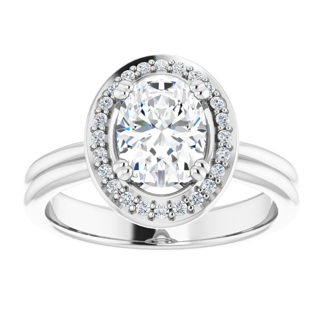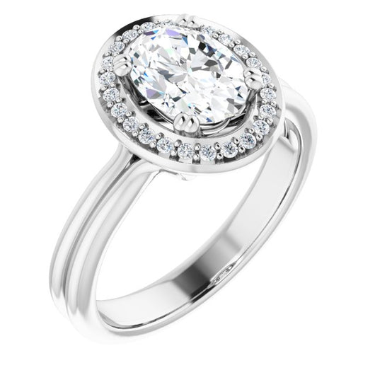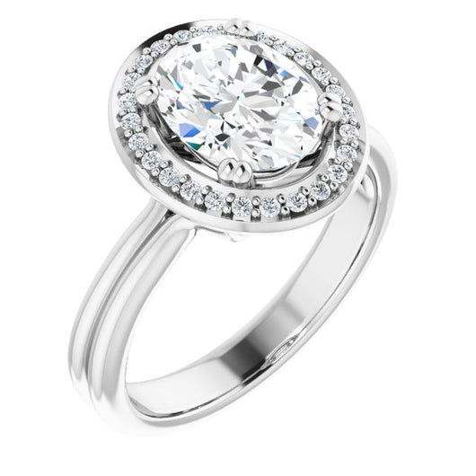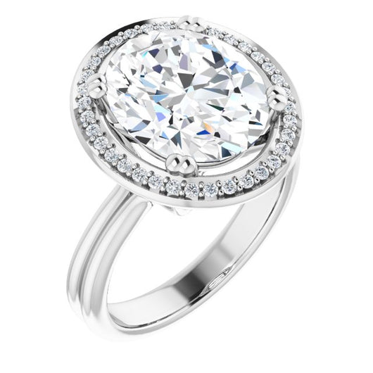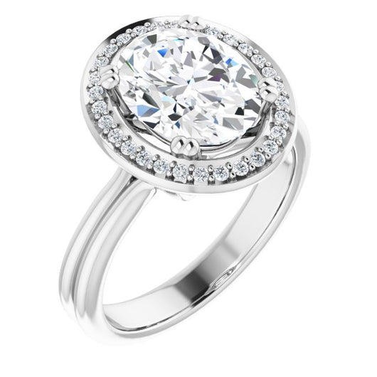 10K White Gold Customizable Oval Cut Style with Scooped Halo and Grooved Band