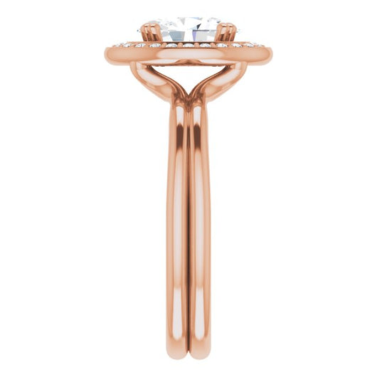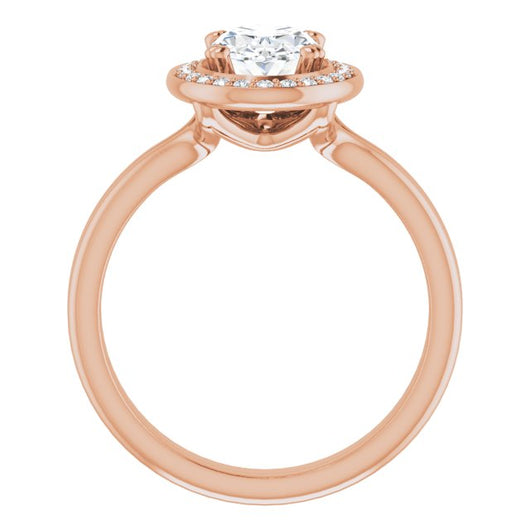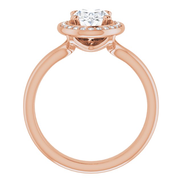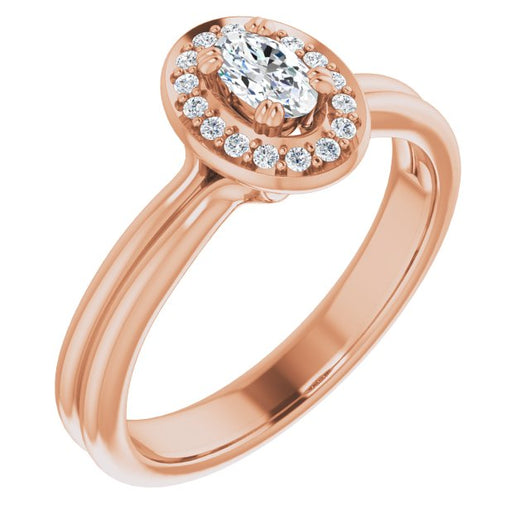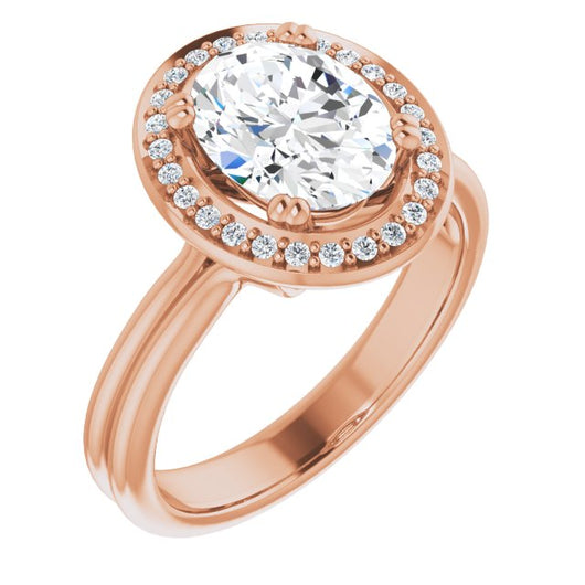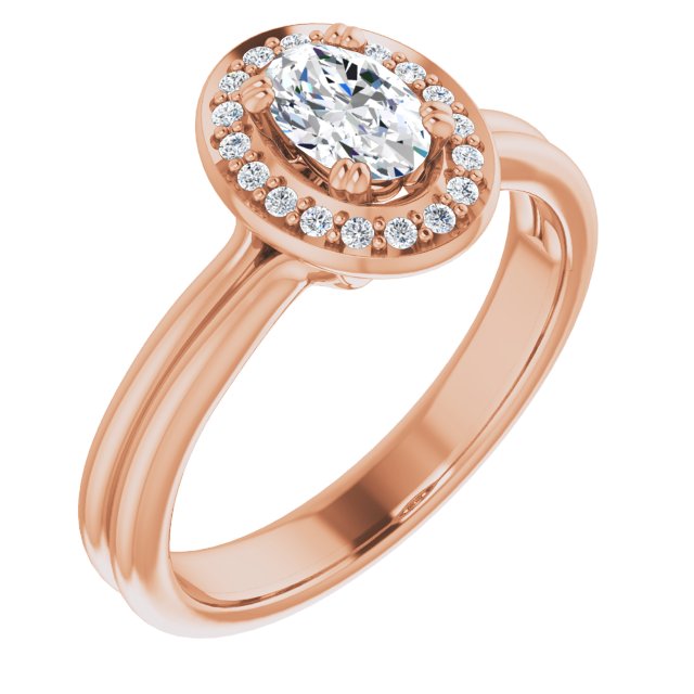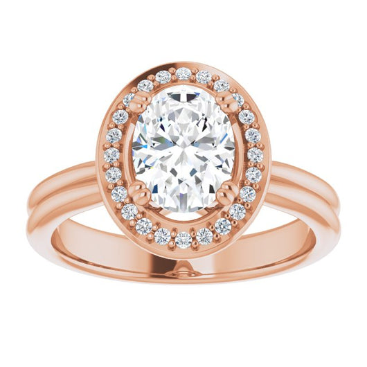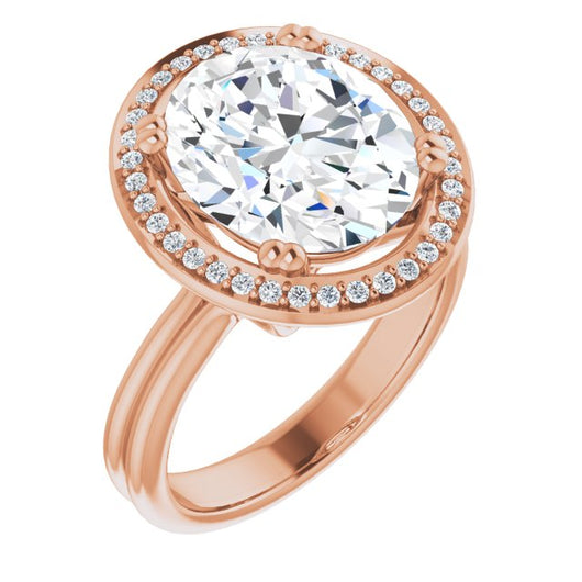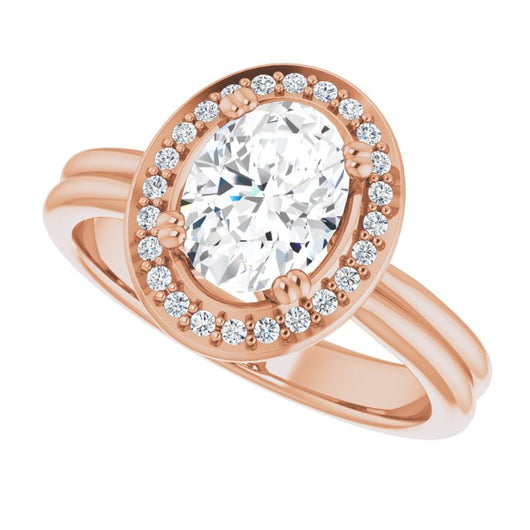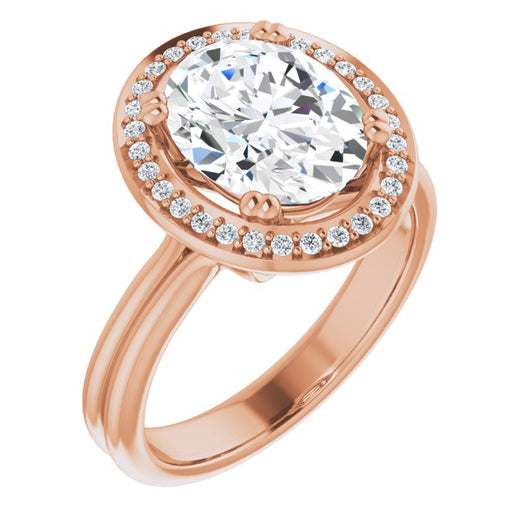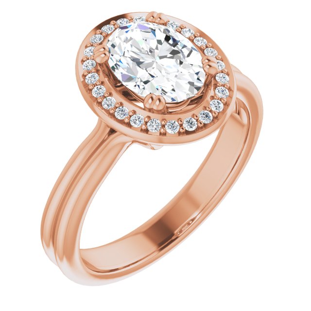 10K Rose Gold Customizable Oval Cut Style with Scooped Halo and Grooved Band