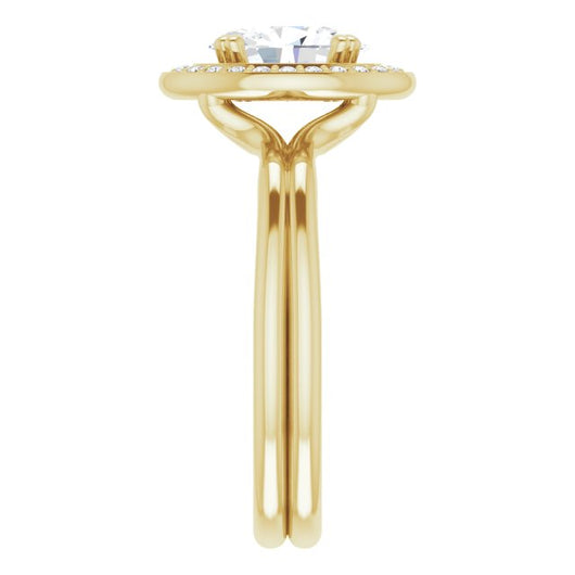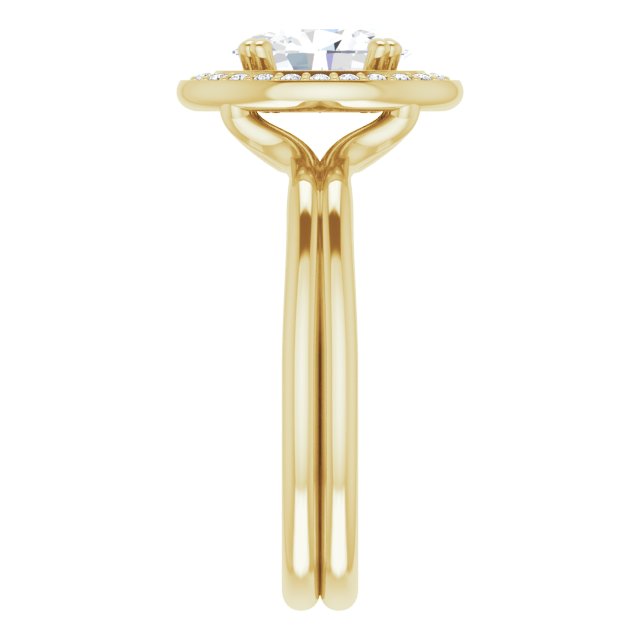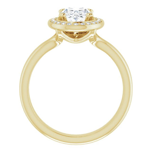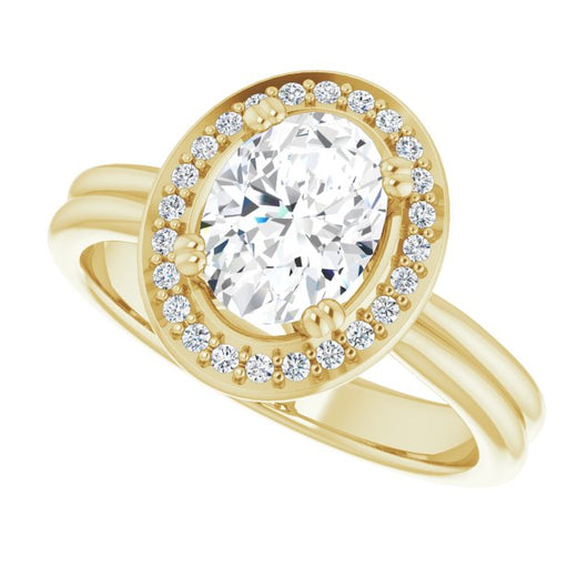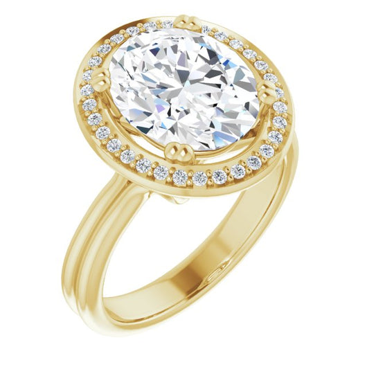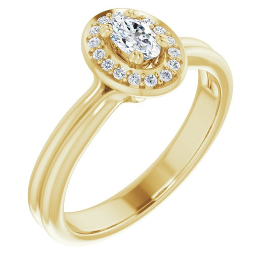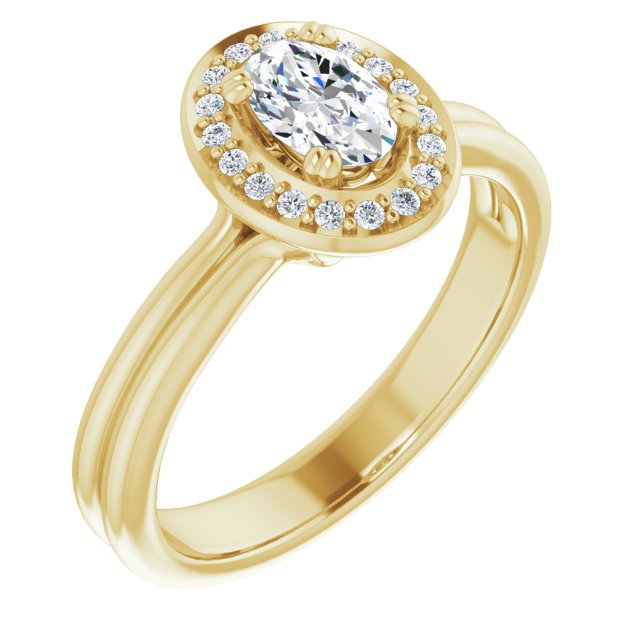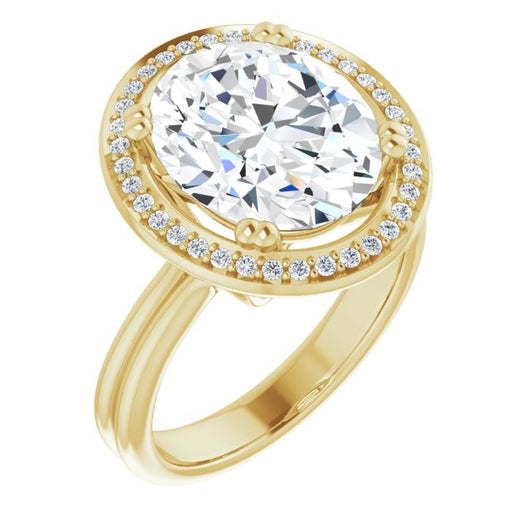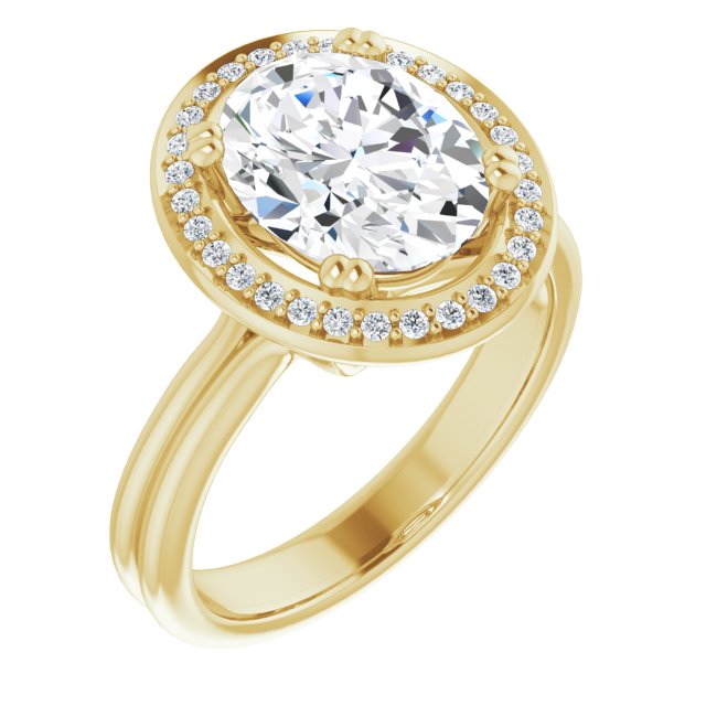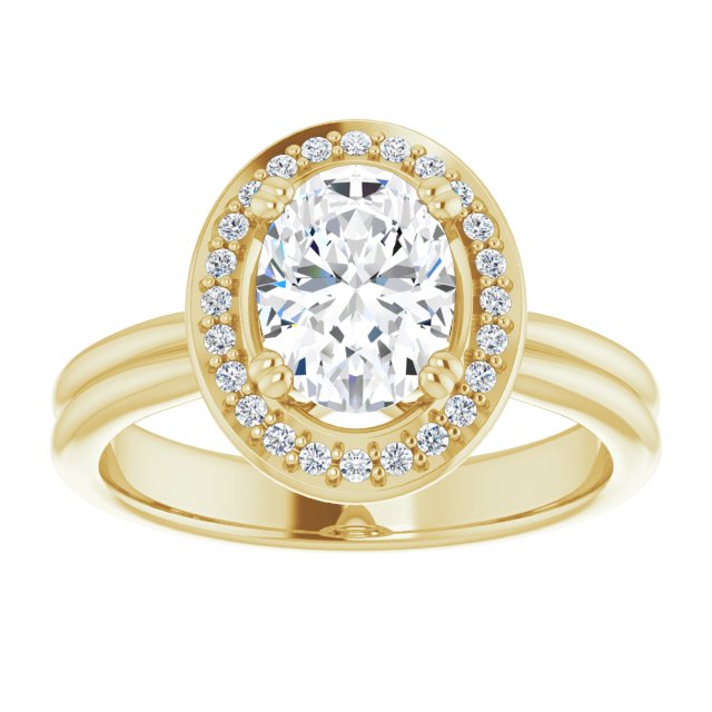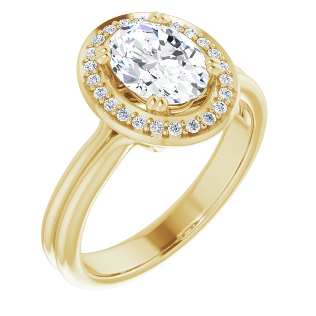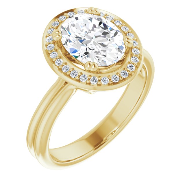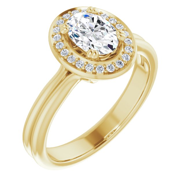 10K Yellow Gold Customizable Oval Cut Style with Scooped Halo and Grooved Band