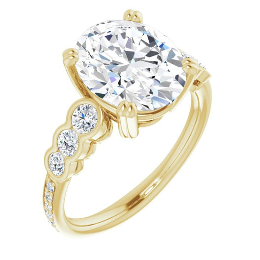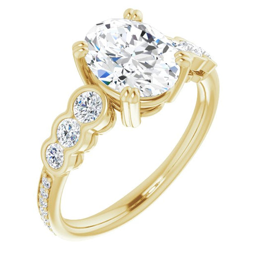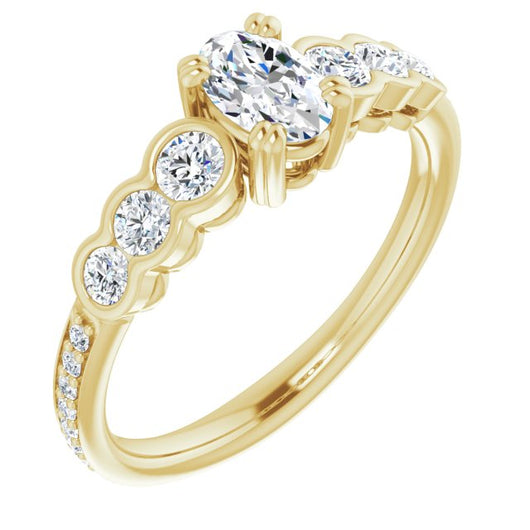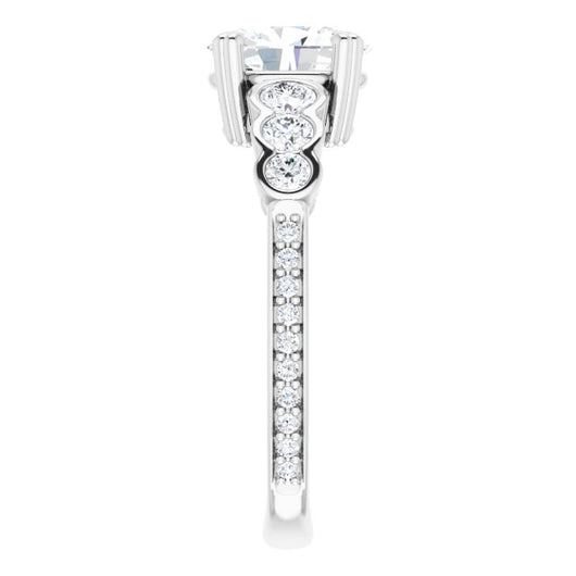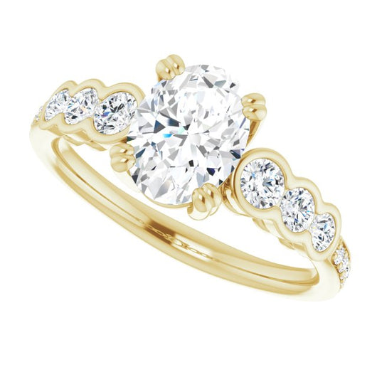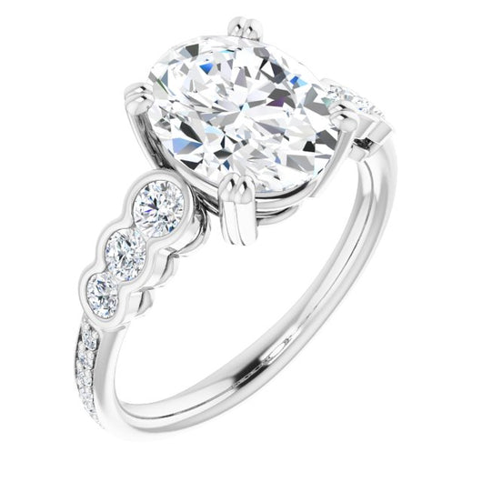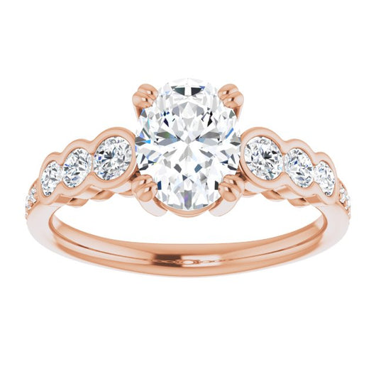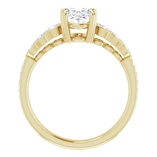 Center Stone Shape: Oval Cut (as pictured). See this customizable ring set with other available center stone shapes here: customize setting.