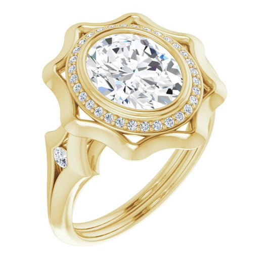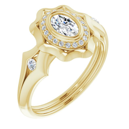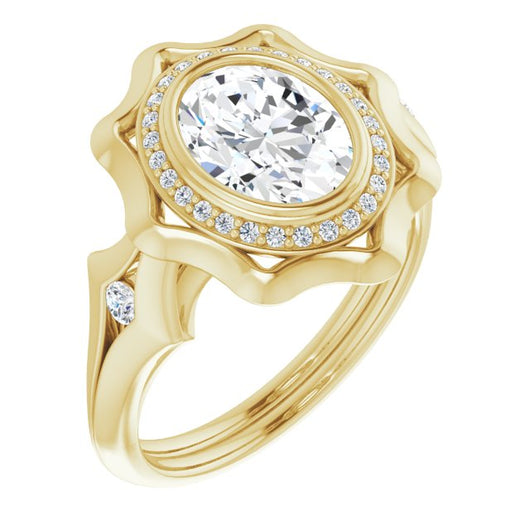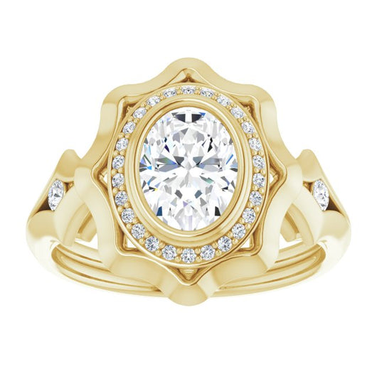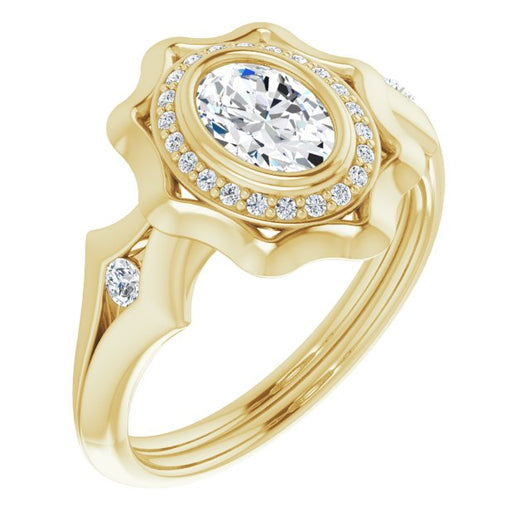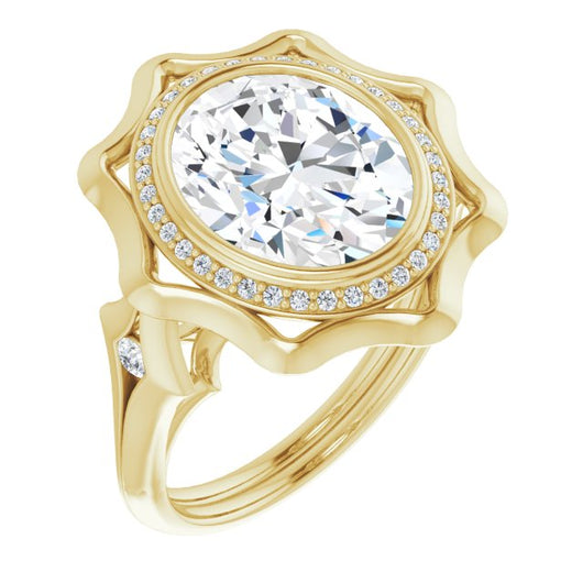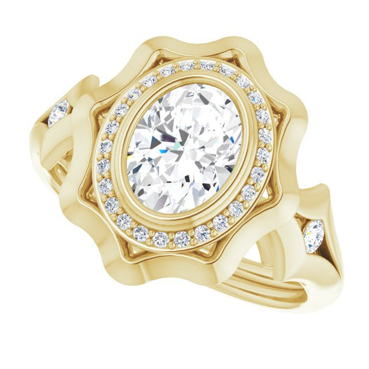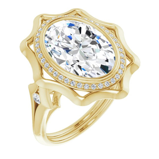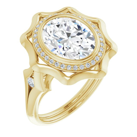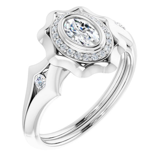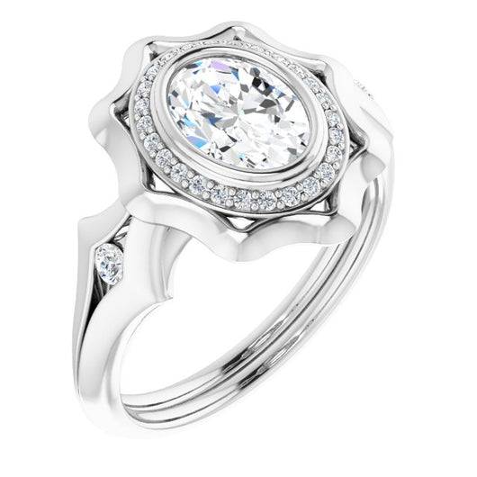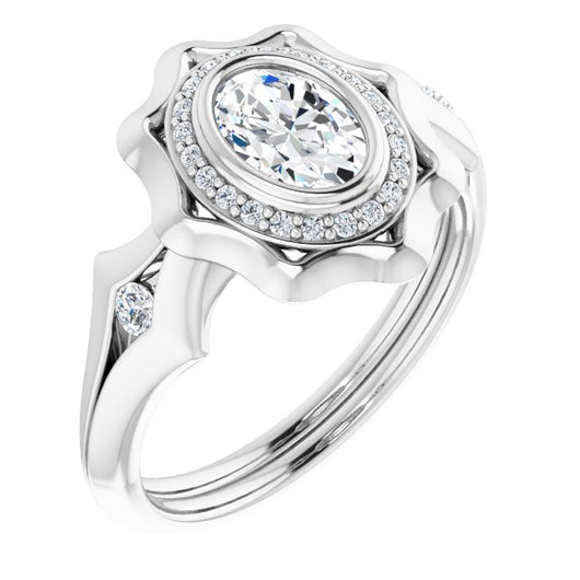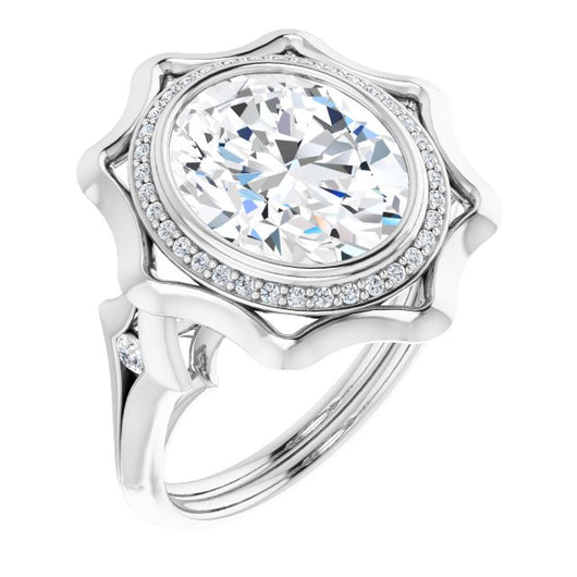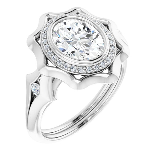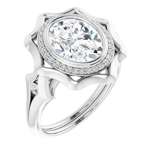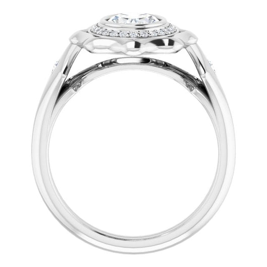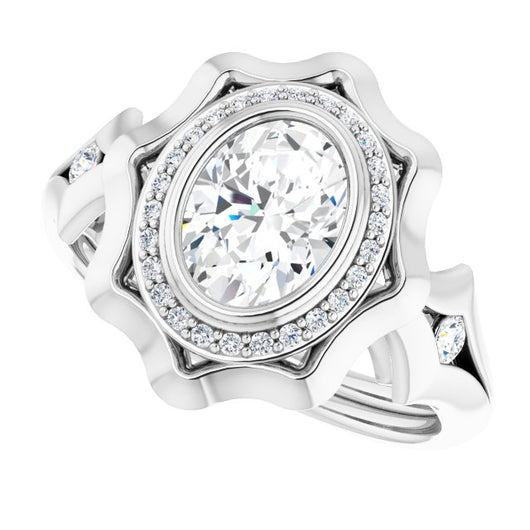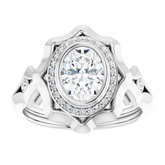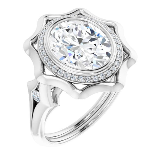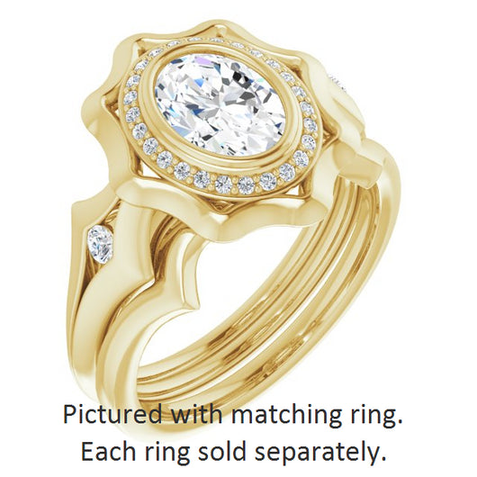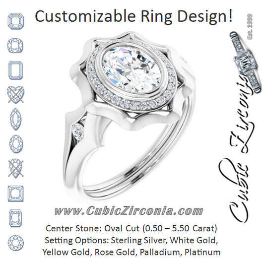 Center Stone Shape: Oval Cut (as pictured). See this customizable ring set with other available center stone shapes here: customize setting.