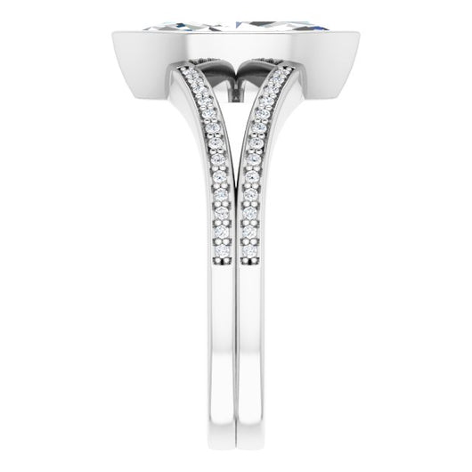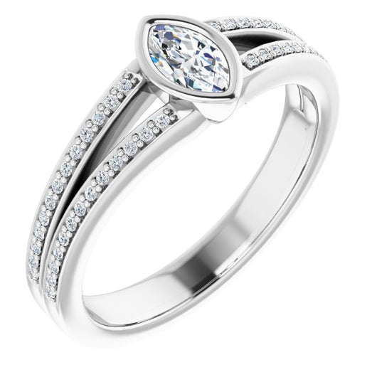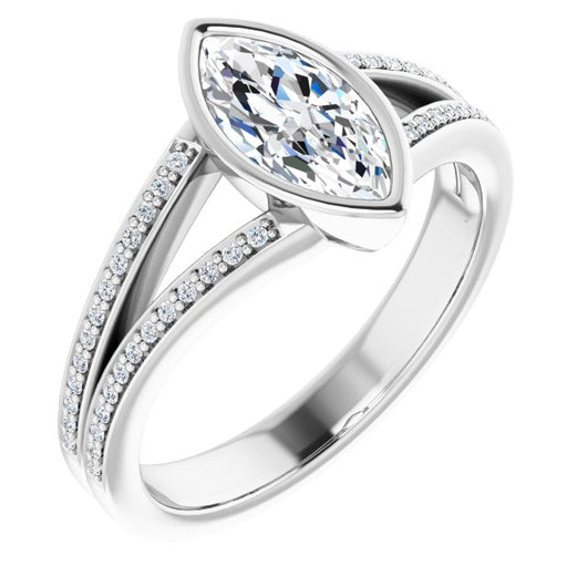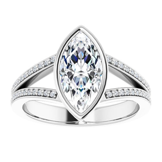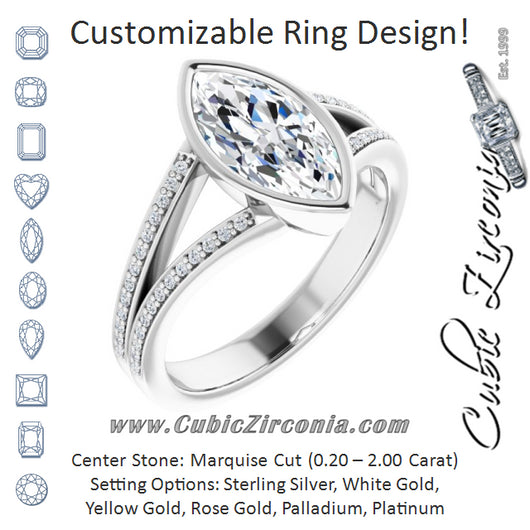 Cubic Zirconia Engagement Ring- The Jenni Lou (Customizable Bezel-set Marquise Cut Design with Split Shared Prong Band)