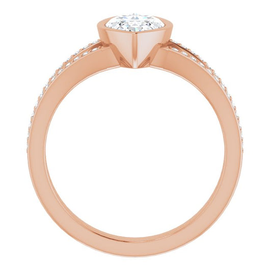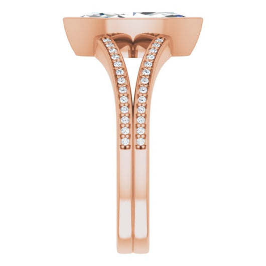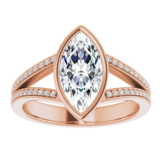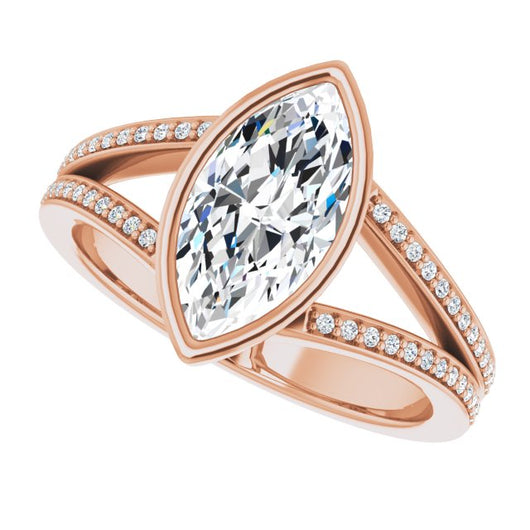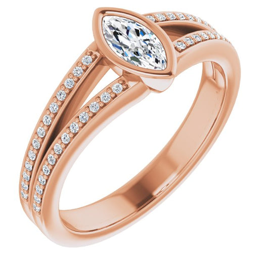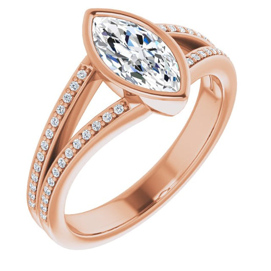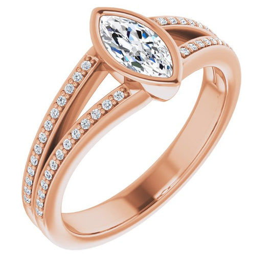 10K Rose Gold Customizable Bezel-set Marquise Cut Design with Split Shared Prong Band