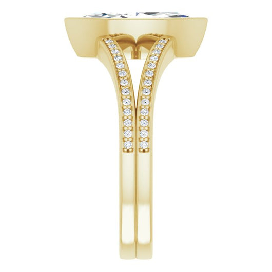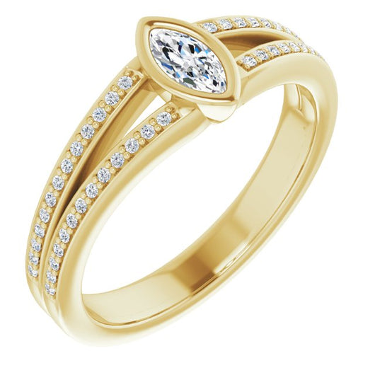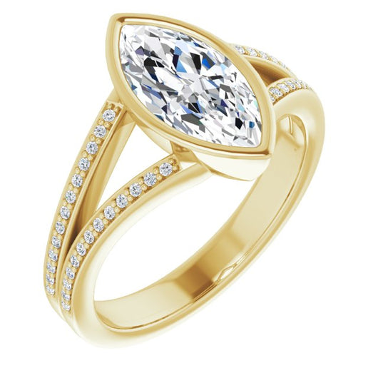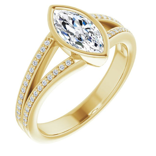 10K Yellow Gold Customizable Bezel-set Marquise Cut Design with Split Shared Prong Band