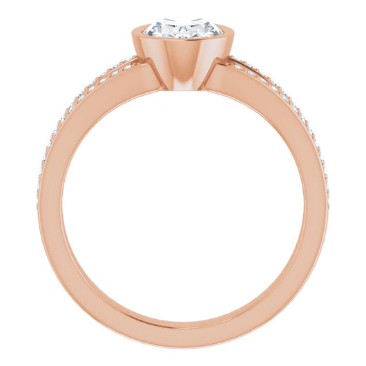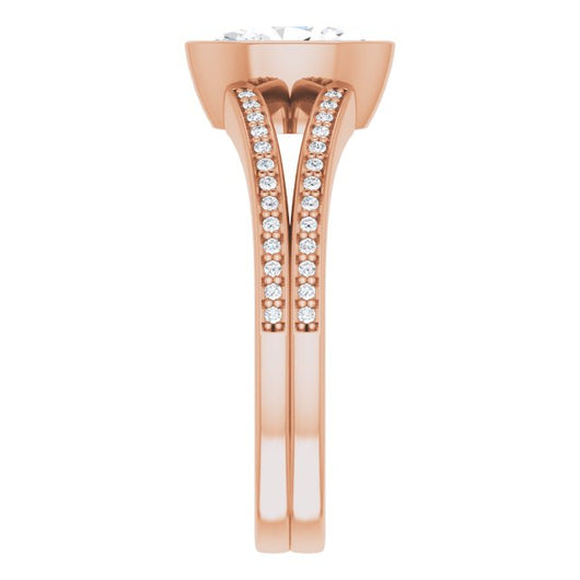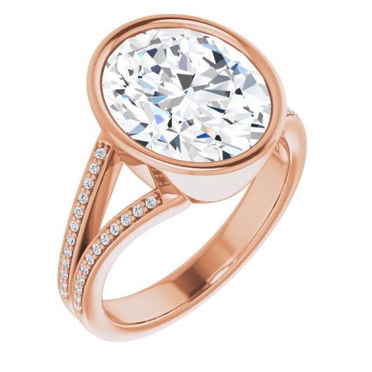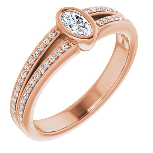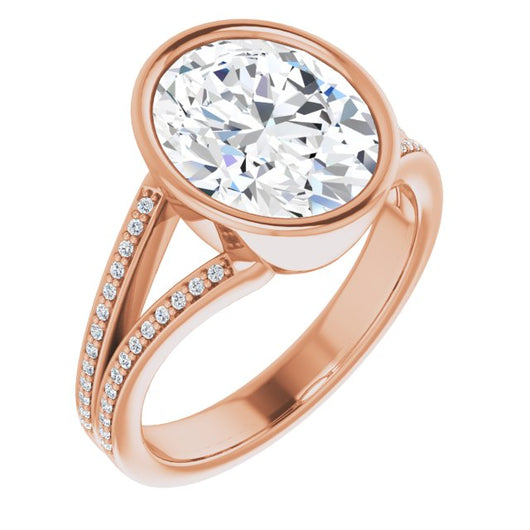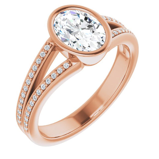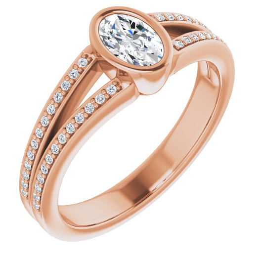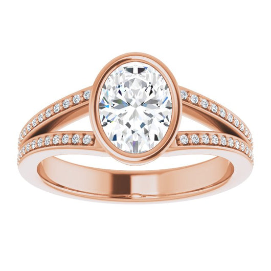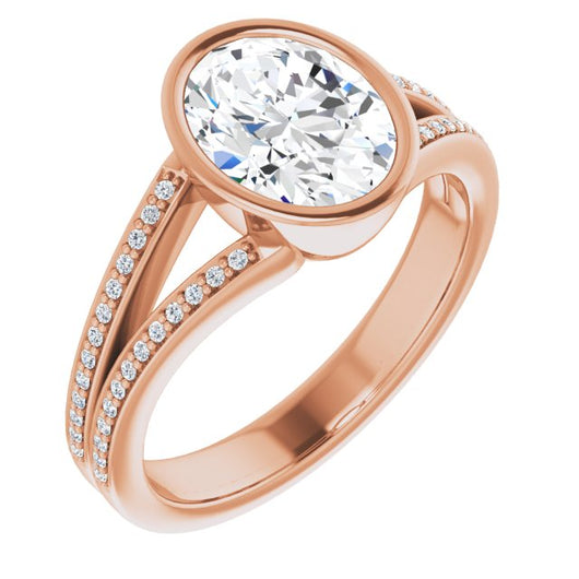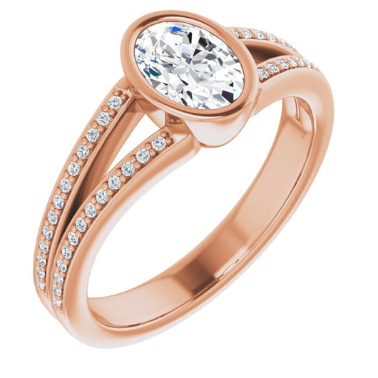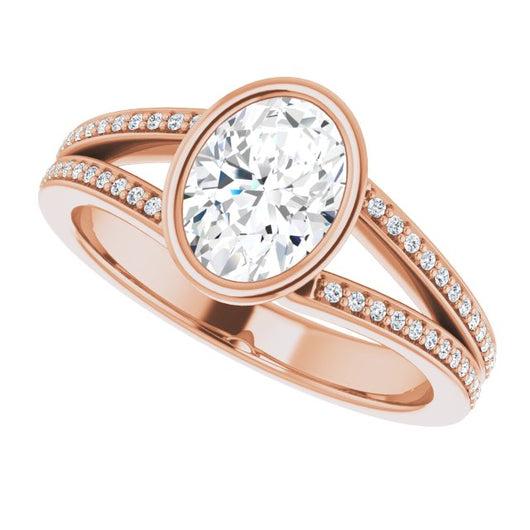 10K Rose Gold Customizable Bezel-set Oval Cut Design with Split Shared Prong Band