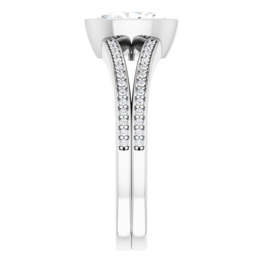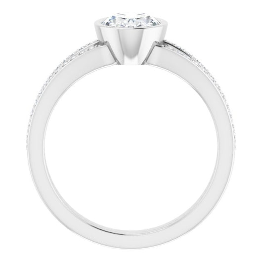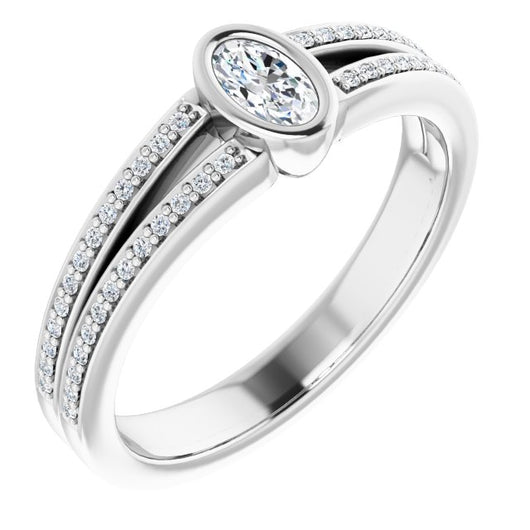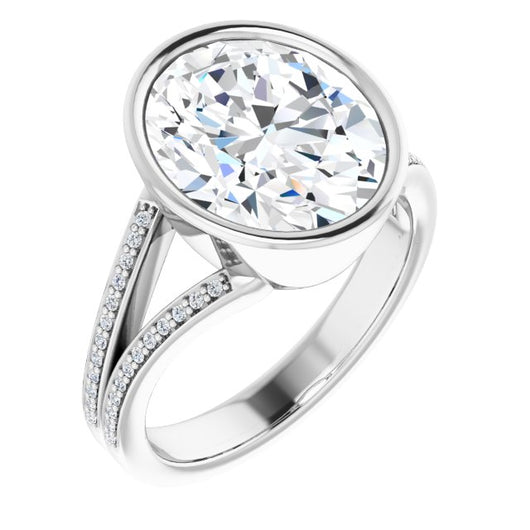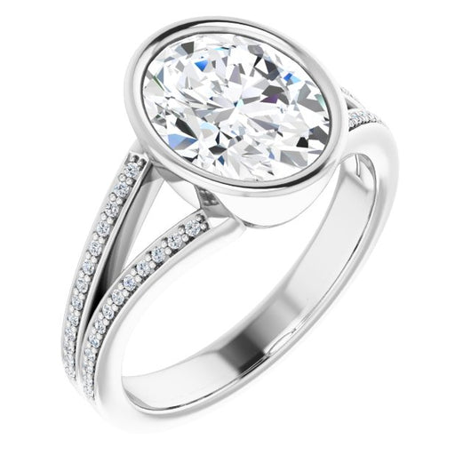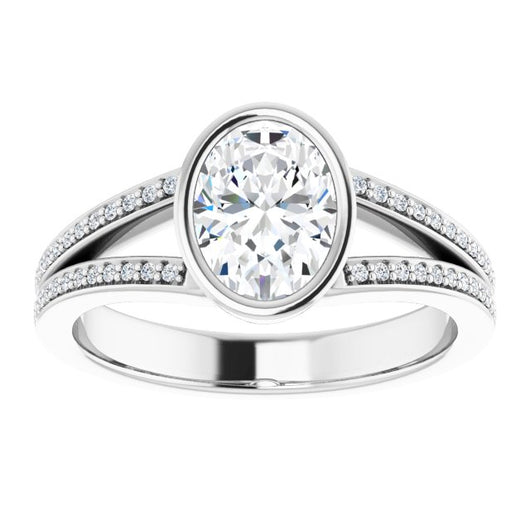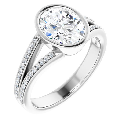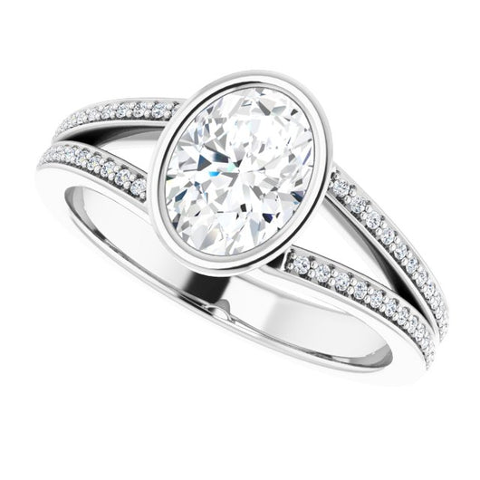 10K White Gold Customizable Bezel-set Oval Cut Design with Split Shared Prong Band