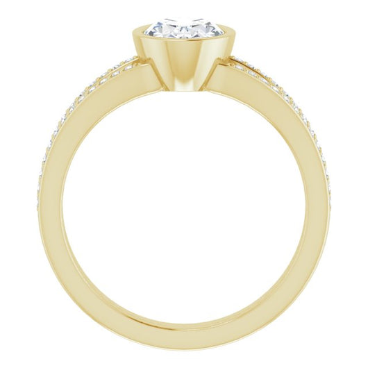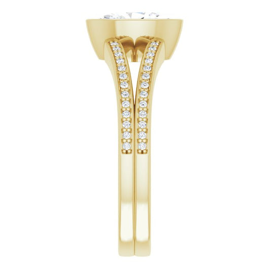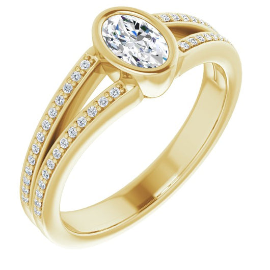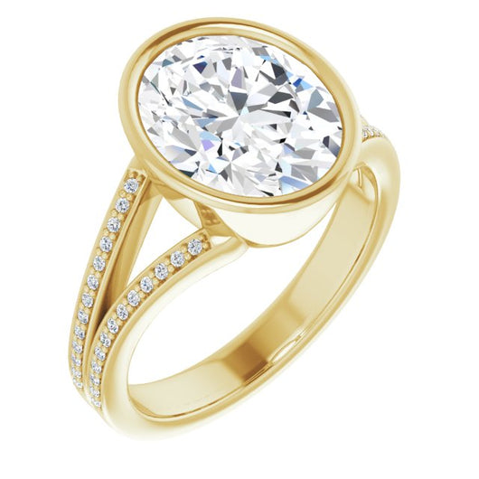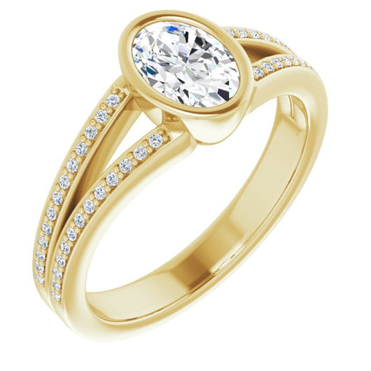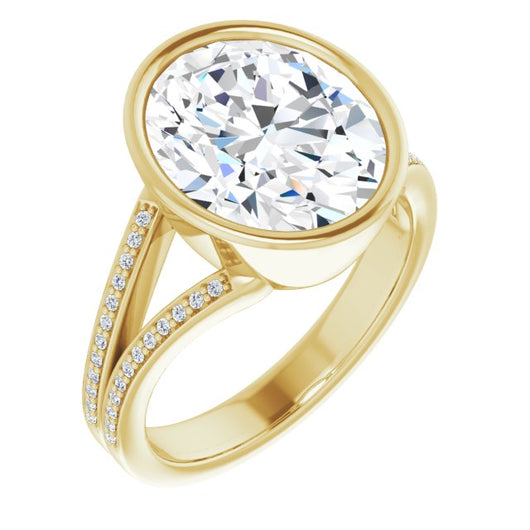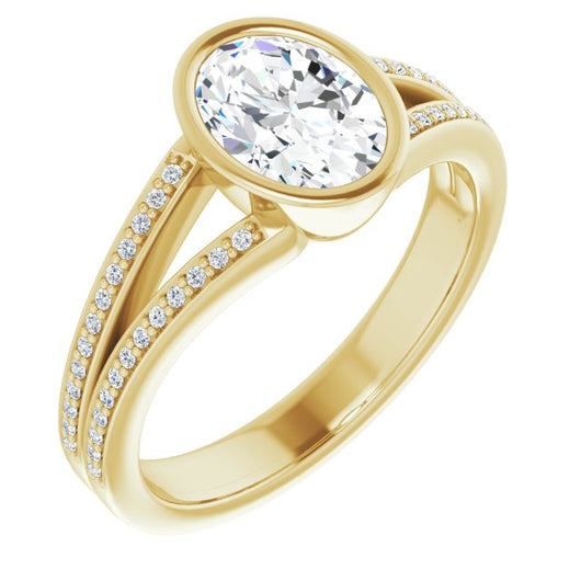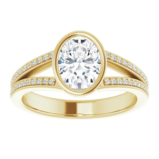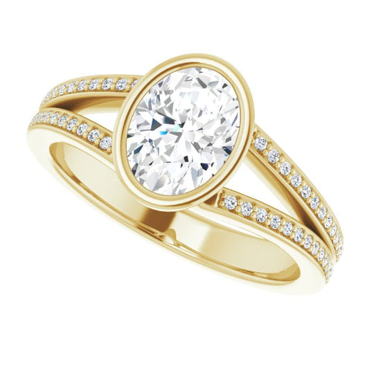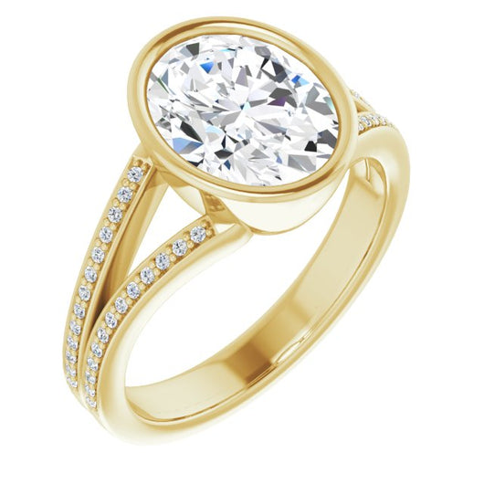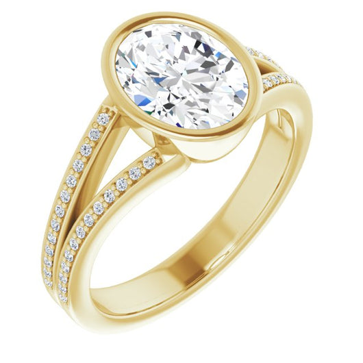 10K Yellow Gold Customizable Bezel-set Oval Cut Design with Split Shared Prong Band