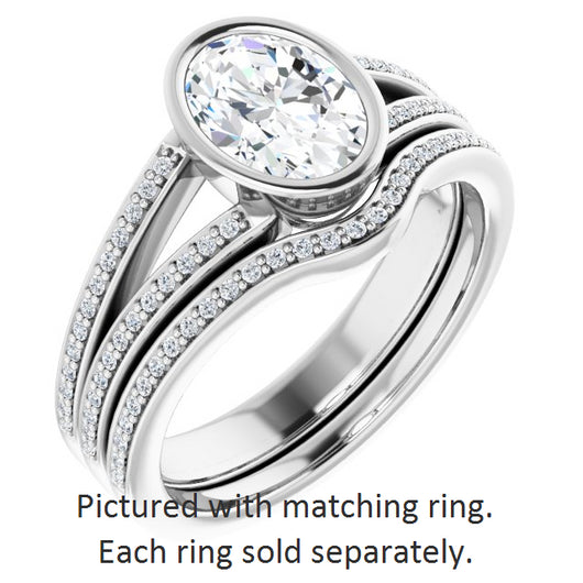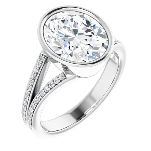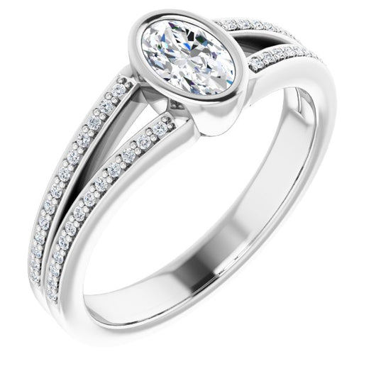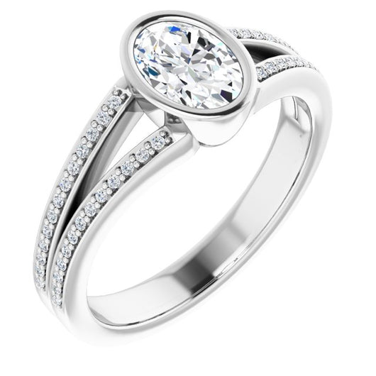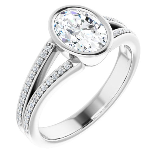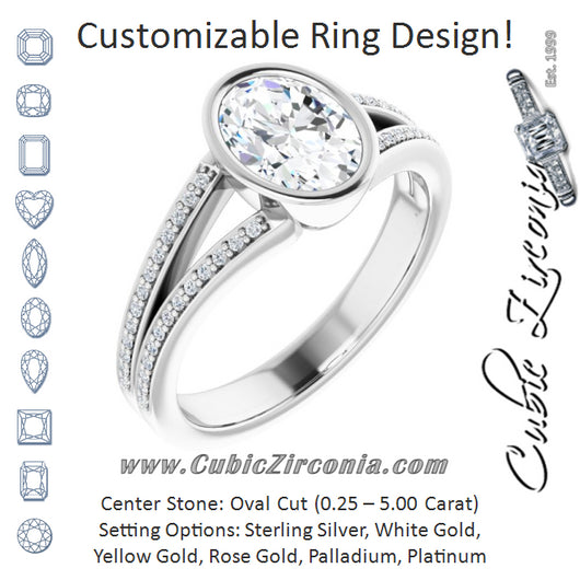 Cubic Zirconia Engagement Ring- The Jenni Lou (Customizable Bezel-set Oval Cut Design with Split Shared Prong Band)