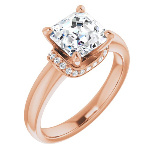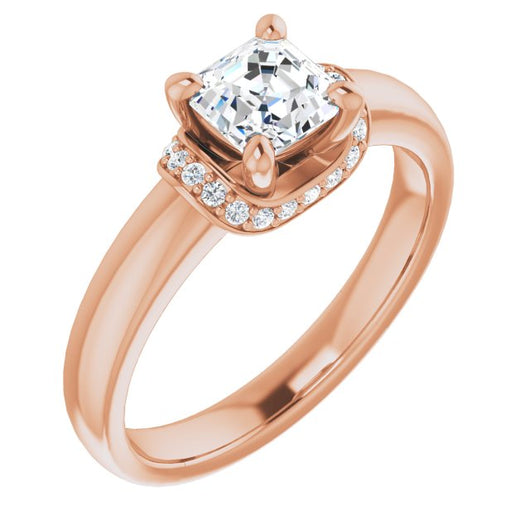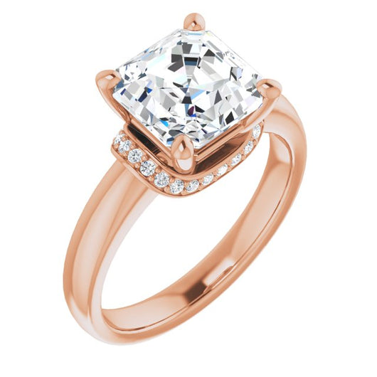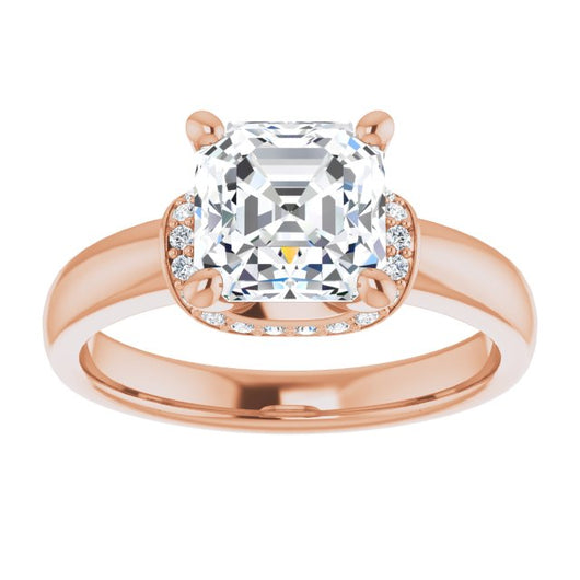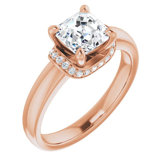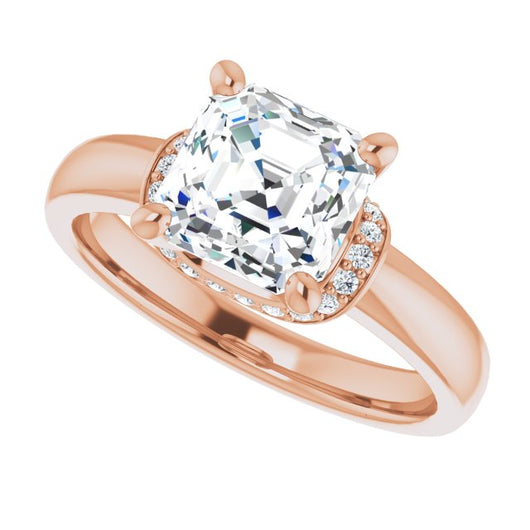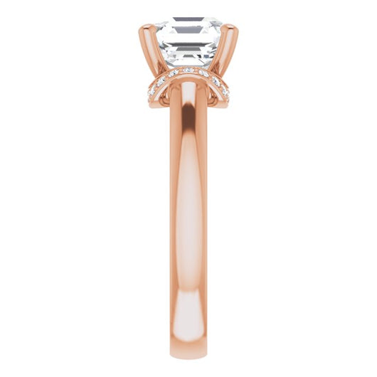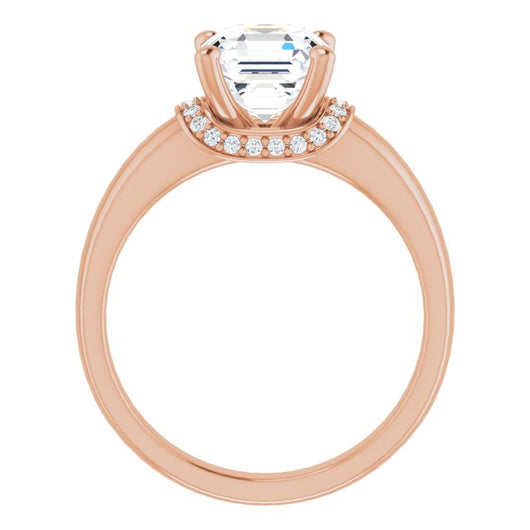10K Rose Gold Customizable Asscher Cut Style featuring Saddle-shaped Under Halo
