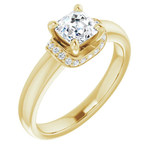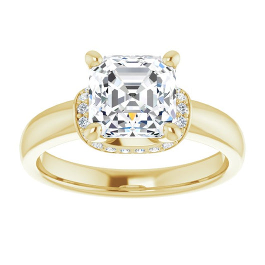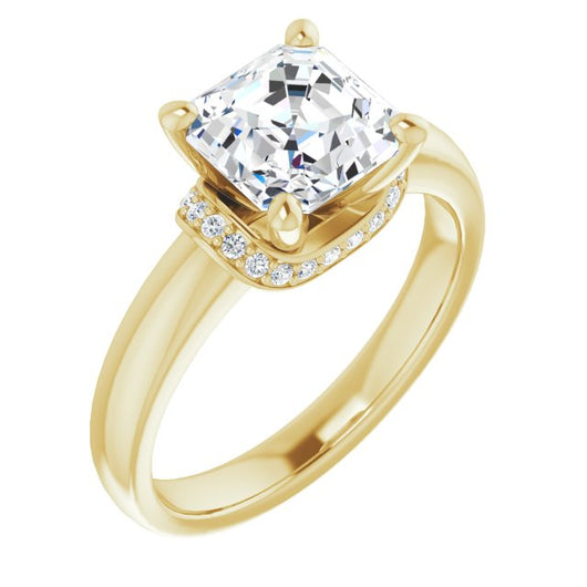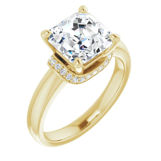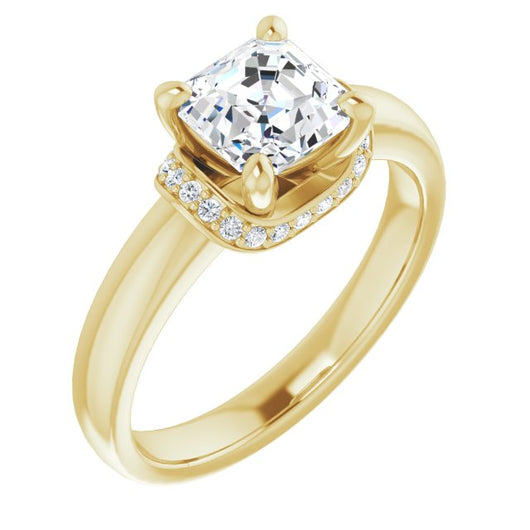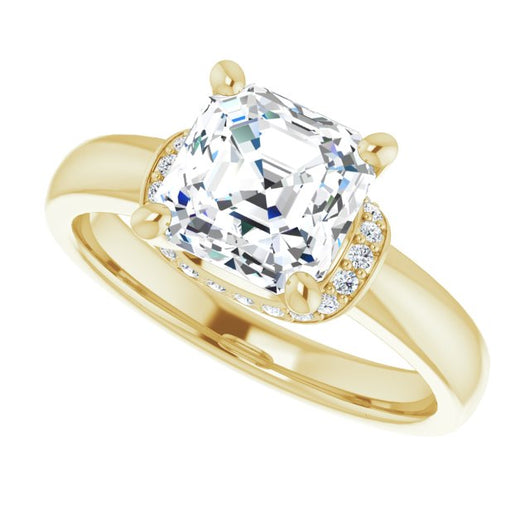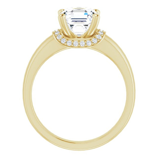 10K Yellow Gold Customizable Asscher Cut Style featuring Saddle-shaped Under Halo