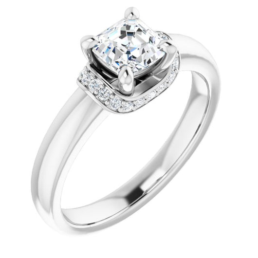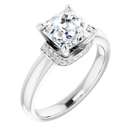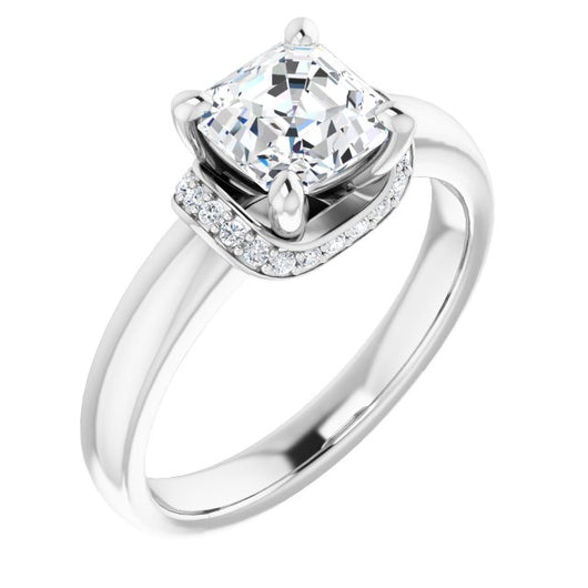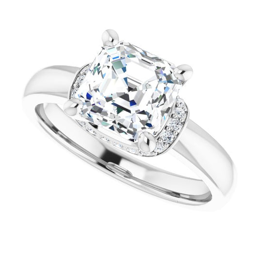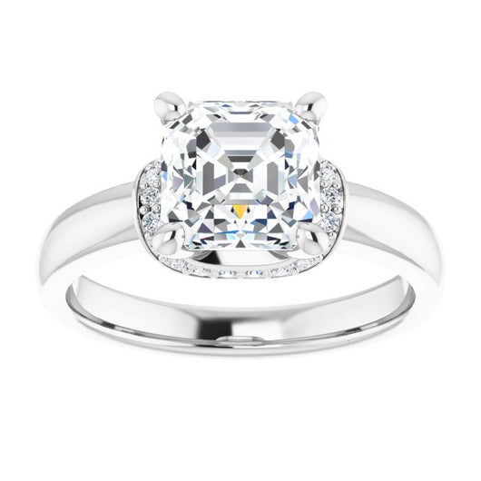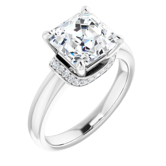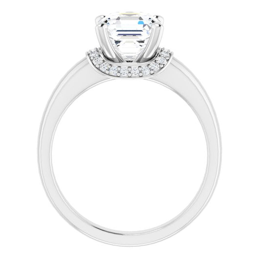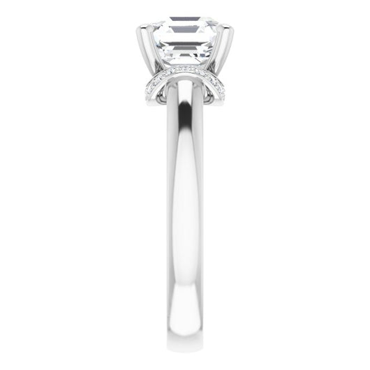 10K White Gold Customizable Asscher Cut Style featuring Saddle-shaped Under Halo