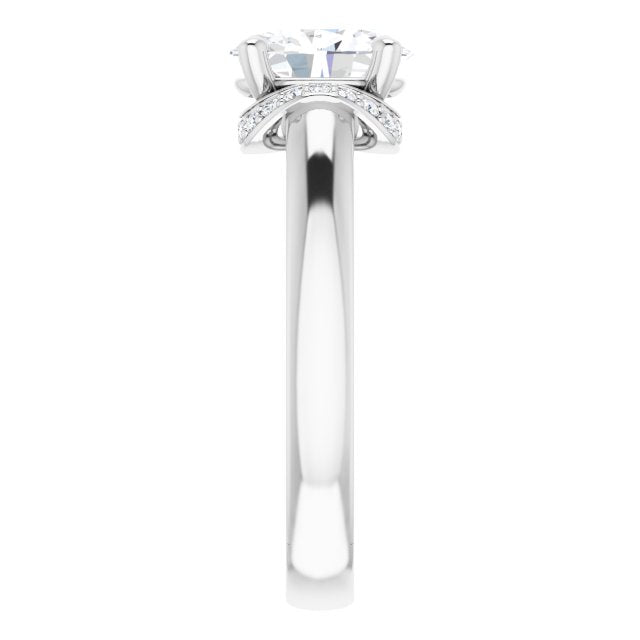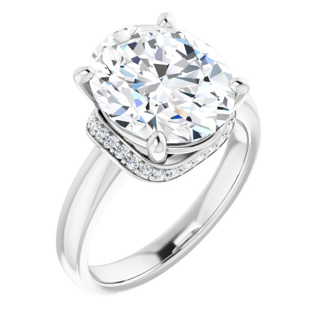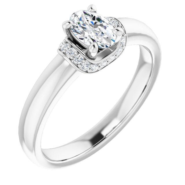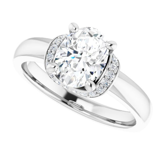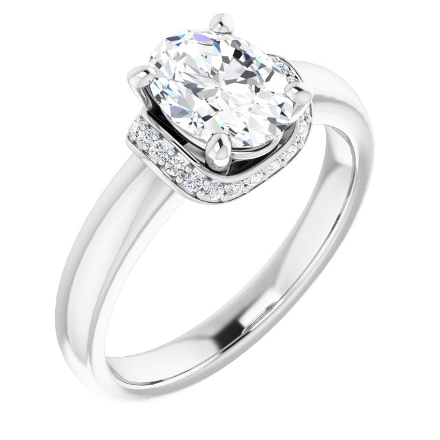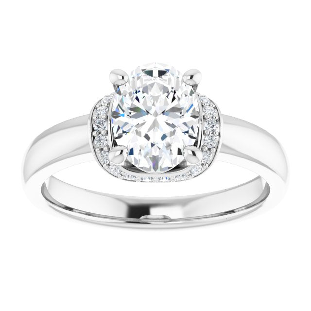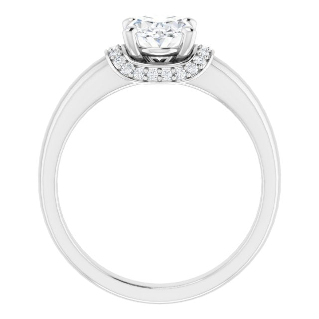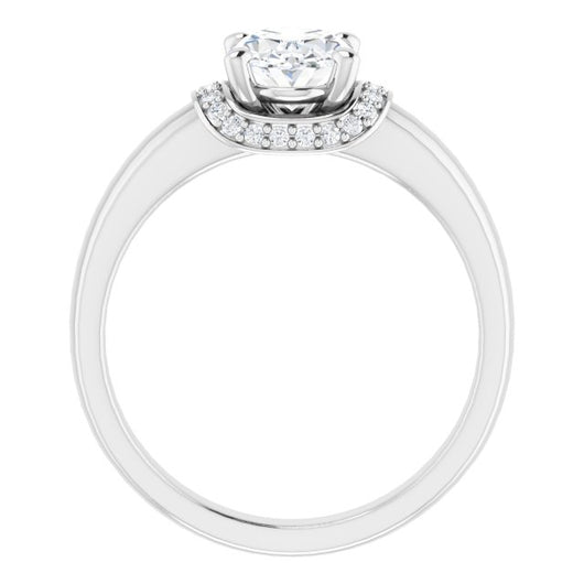 10K White Gold Customizable Oval Cut Style featuring Saddle-shaped Under Halo