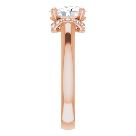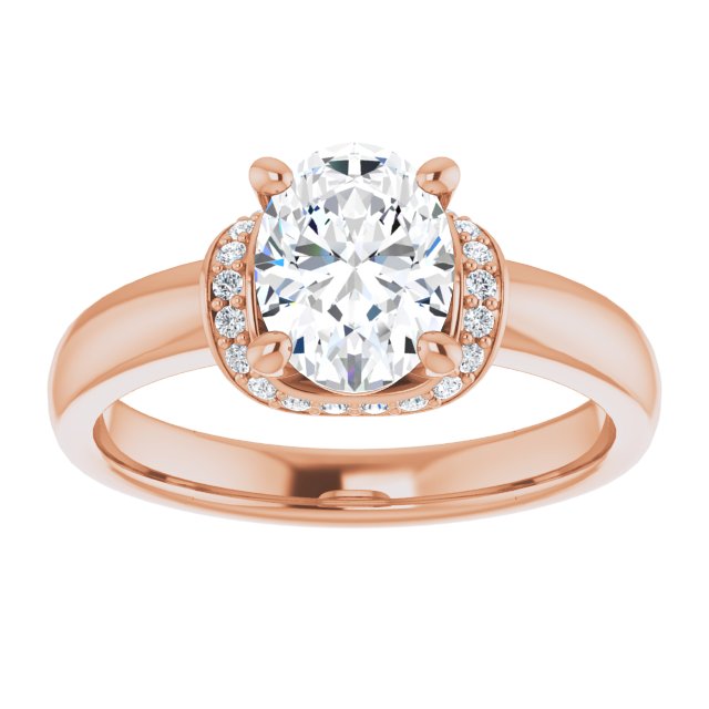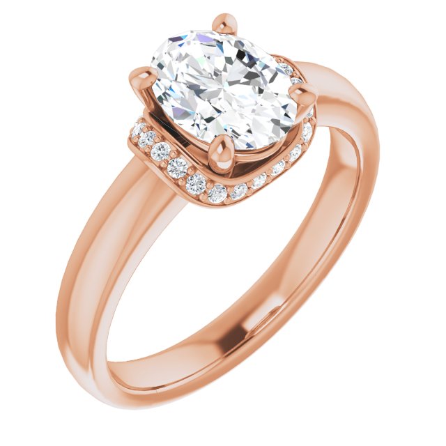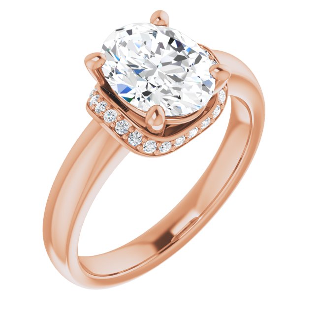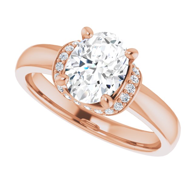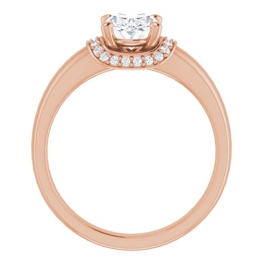 10K Rose Gold Customizable Oval Cut Style featuring Saddle-shaped Under Halo