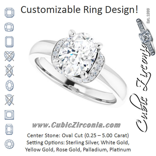 Cubic Zirconia Engagement Ring- The Jennifer Elena (Customizable Oval Cut Style featuring Saddle-shaped Under Halo)
