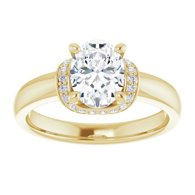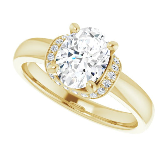 10K Yellow Gold Customizable Oval Cut Style featuring Saddle-shaped Under Halo