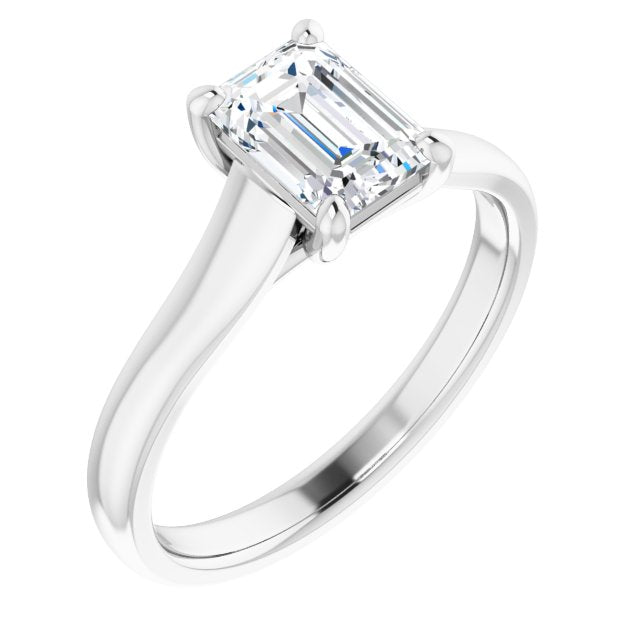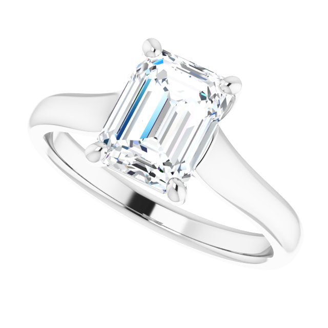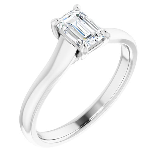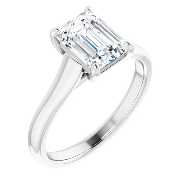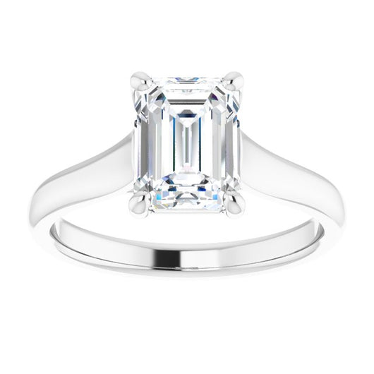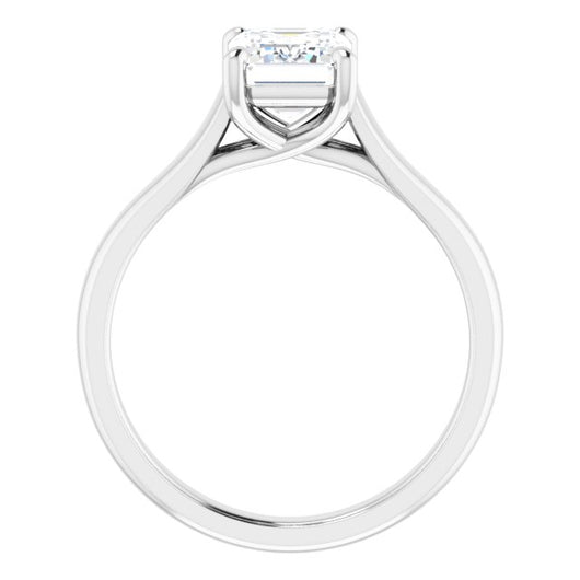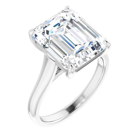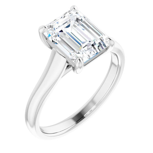 10K White Gold Customizable Emerald/Radiant Cut Cathedral-Prong Solitaire with Decorative X Trellis