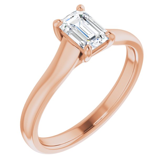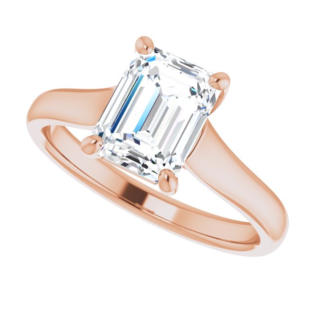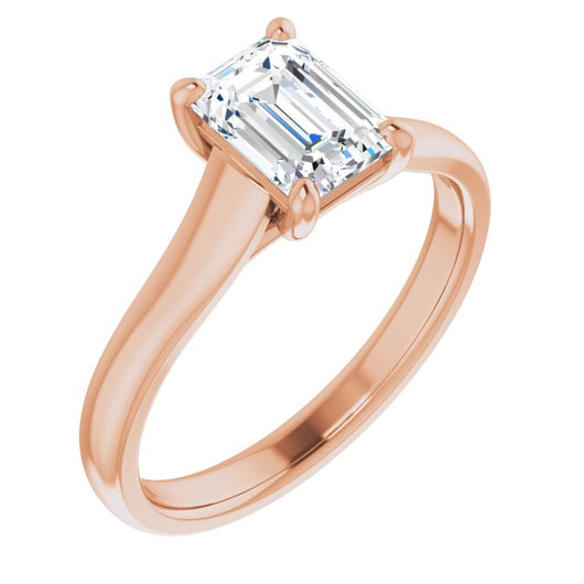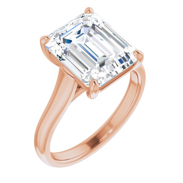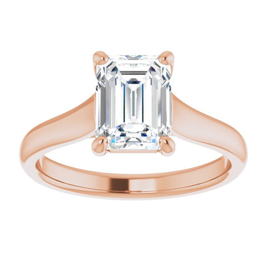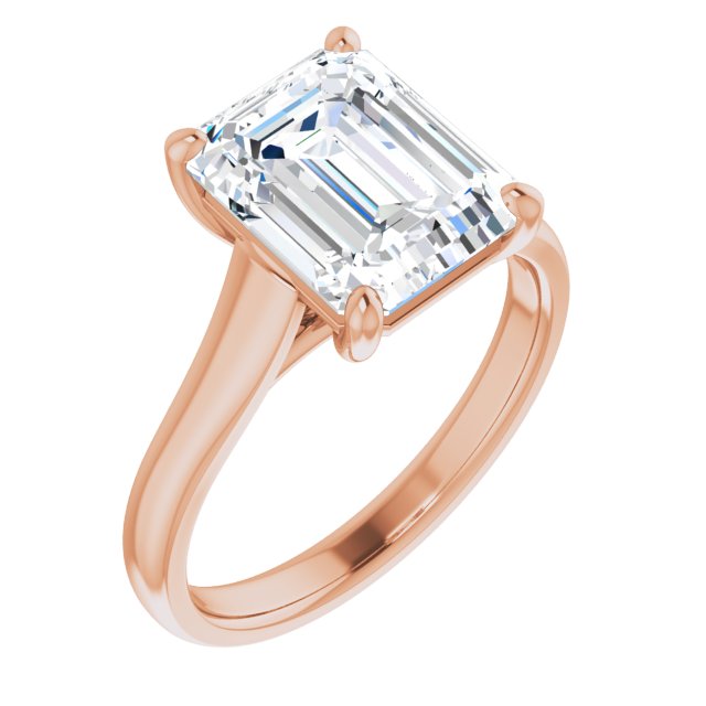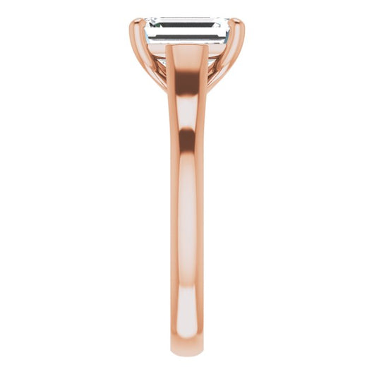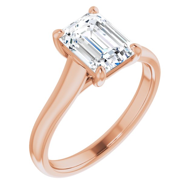 10K Rose Gold Customizable Emerald/Radiant Cut Cathedral-Prong Solitaire with Decorative X Trellis