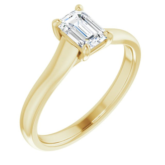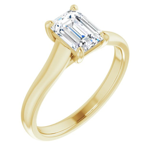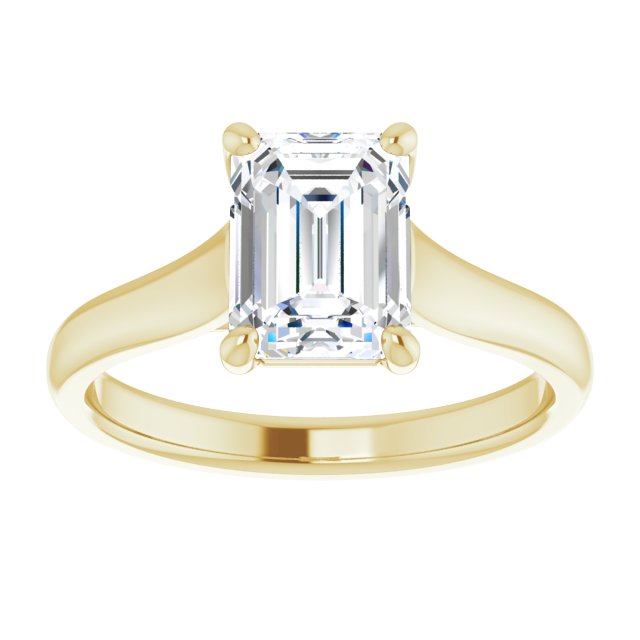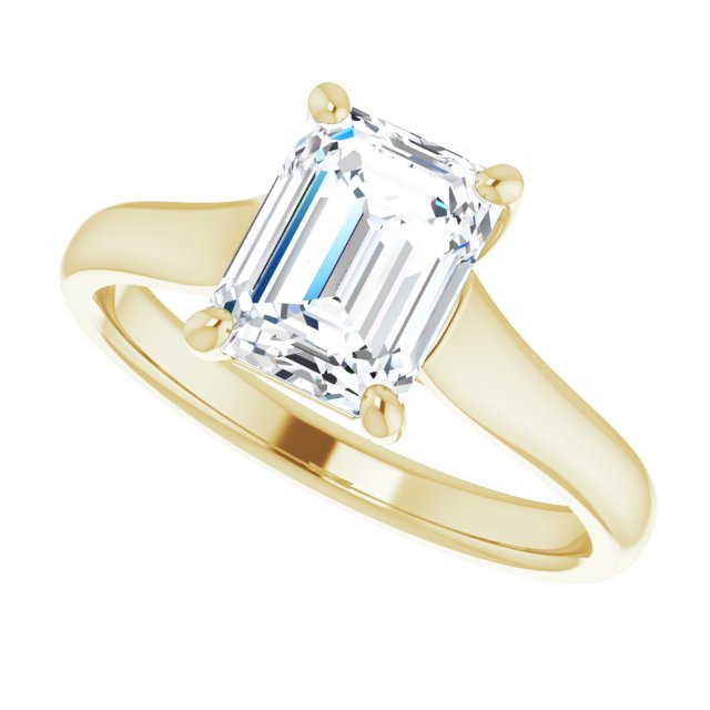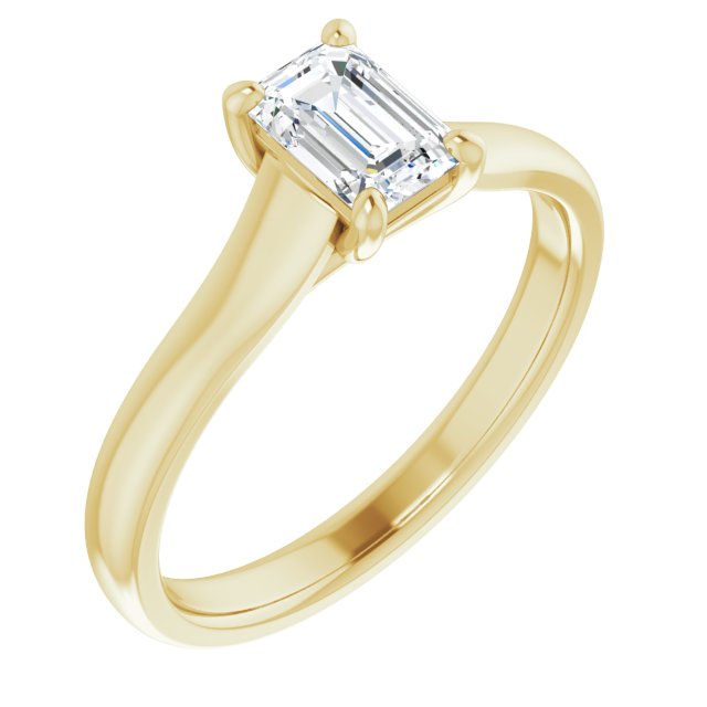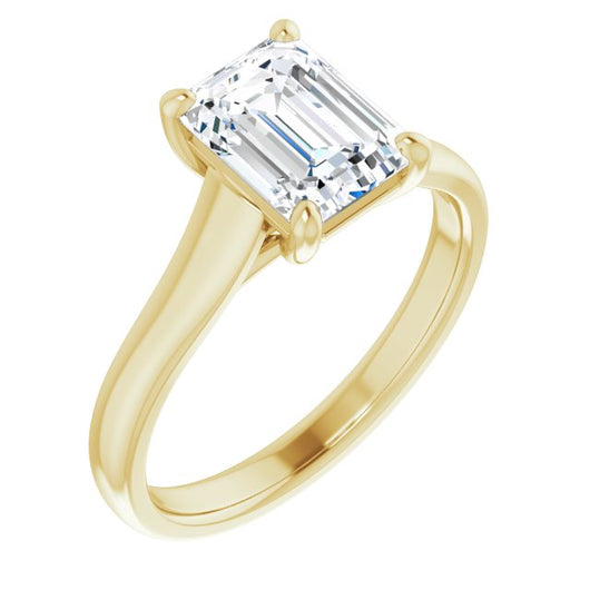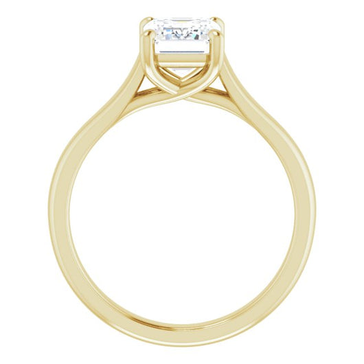 10K Yellow Gold Customizable Emerald/Radiant Cut Cathedral-Prong Solitaire with Decorative X Trellis