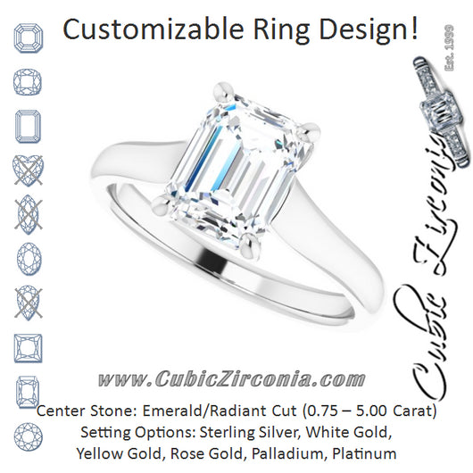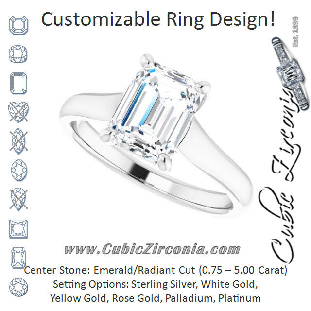 Cubic Zirconia Engagement Ring- The Jewel (Customizable Emerald Cut Cathedral-Prong Solitaire with Decorative X Trellis)