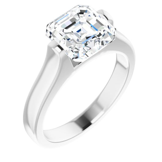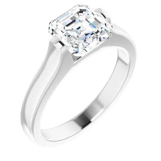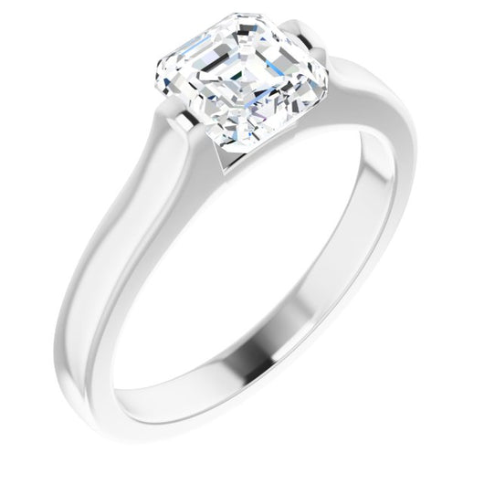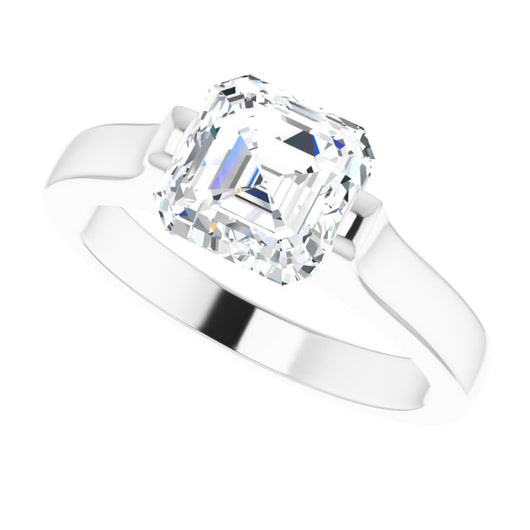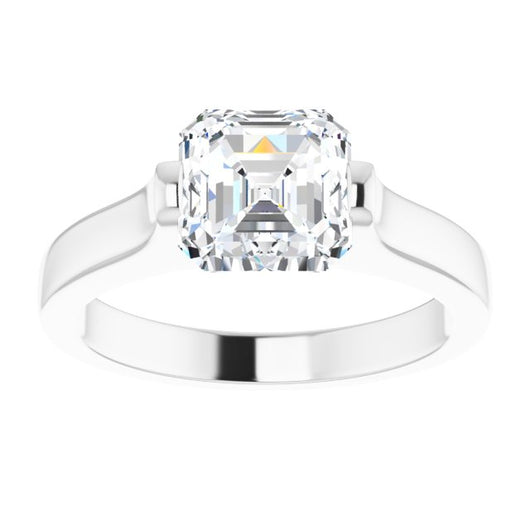 10K White Gold Customizable Bar-set Asscher Cut Solitaire