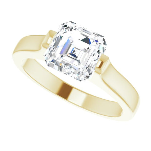 10K Yellow Gold Customizable Bar-set Asscher Cut Solitaire