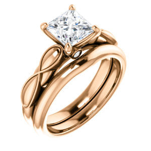 Cubic Zirconia Engagement Ring- The Jime (Customizable Cathedral-Raised Princess Cut with Thick Infinity-Scalloped Band & Peekaboo Accents)