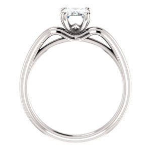 Never out of style, the classic solitaire engagement ring is a perennial favorite. The Jodee's polished, tapering-width band will be made with care in your choice of precious metals. Only from the side view of this ring can you see the expected classical look gets changed up a little with a hint of non-conformity. We're talking about the decorative metalwork trellis beneath the cathedral-raised, prong-set center setting. The Jodee ring features any of  7 different AAAAA (5A) cubic zirconia center stone shapes you can see by clicking the "customize" link provided (Radiant Cut version is pictured on this product webpage, with carat weight choice from 0.33 to 5.0 carats).