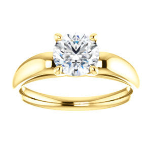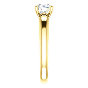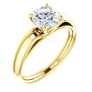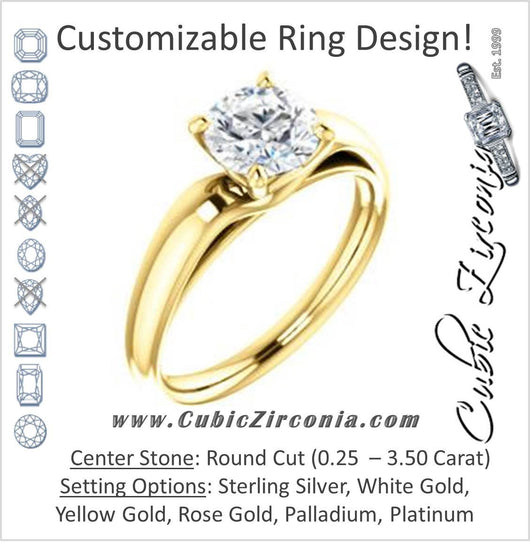 Welcome to the official home of cubic zirconia online! Striking in style and delicate in design, this precision-machined prong-set solitaire Round Cut ring will be crafted in your choice of White, Rose or Yellow Gold, Palladium, .925 Sterling Silver or pure 950 Platinum. The classic contour-enhancing, tapered-band design will highlight your choice of a 0.25, 0.50, 0.75, 1.0, 1.50, 2.0, 2.5, 3.0 or 3.5 carat diamond-quality Round Cut CZ center stone. We call the cubic zirconia we use in our high-end CubicZirconia.com finished jewelry "diamond quality" for this reason: neither you or anyone in your life, nor even a diamond  jeweler with decades of experience can tell the difference between our man-made 5A cubic zirconia stone and a flawless mined diamond with the naked eye. Our promise to you is that the two are visually indistinguishable without special tools or conditions. The Johnnie is a contemporary ring that will make the traditionalist smile, too, whether given as a promise ring, purity ring, or engagement ring. Enjoy the prong-enhancement with special decorated basket.