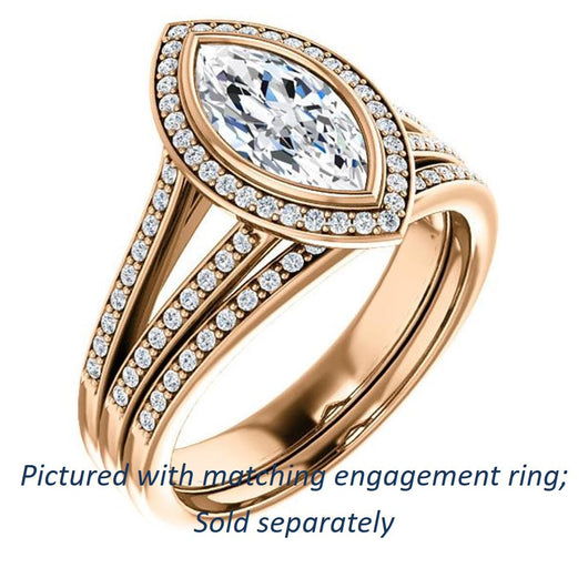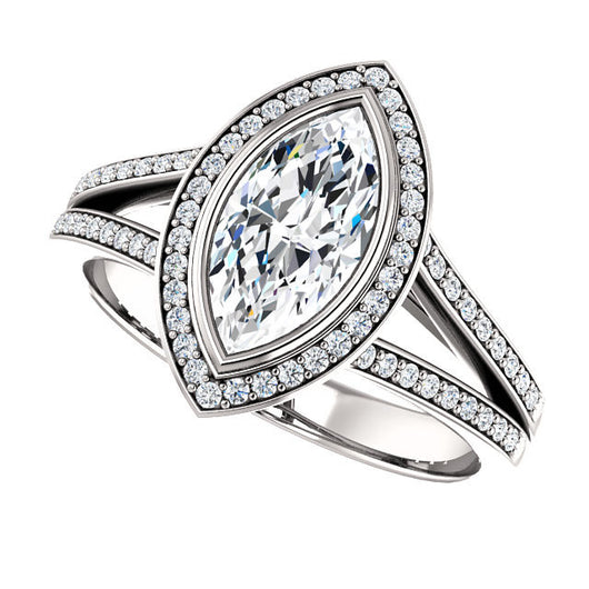 Cubic Zirconia Engagement Ring- The Josefina (Customizable Halo-Style Marquise Cut with Wide Split-Band Pavé)